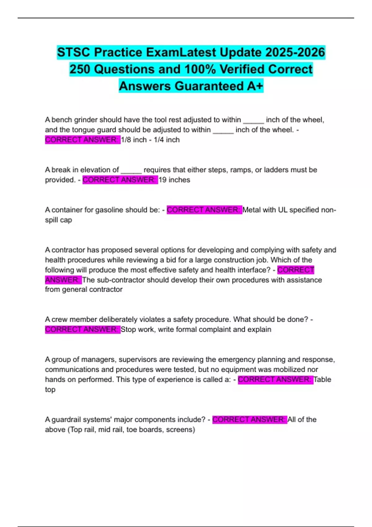 STSC Exam & Study Guide Latest Update Questions and 100% Verified Correct Answers