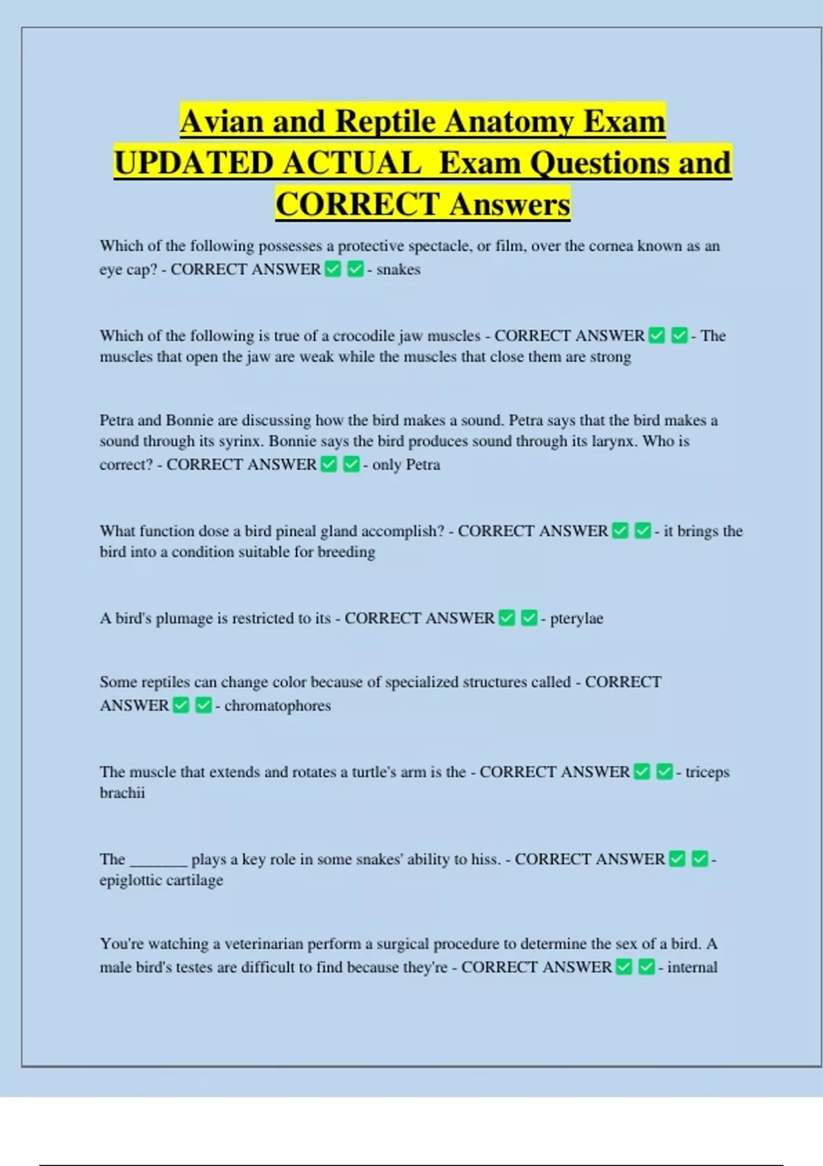 Avian Bundled Exam Questions WITH CORRECT Answers