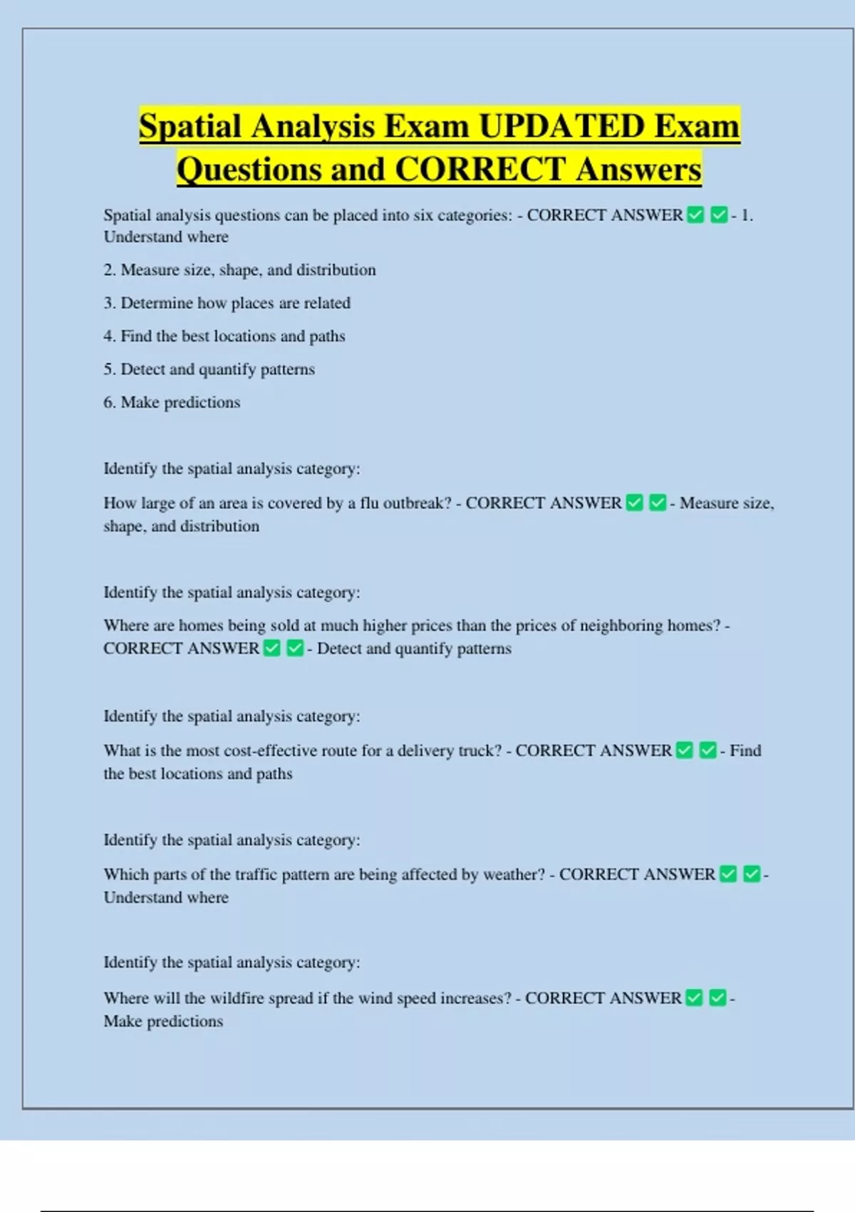 Spatial Analysis Bundled Exam Questions WITH CORRECT Answers