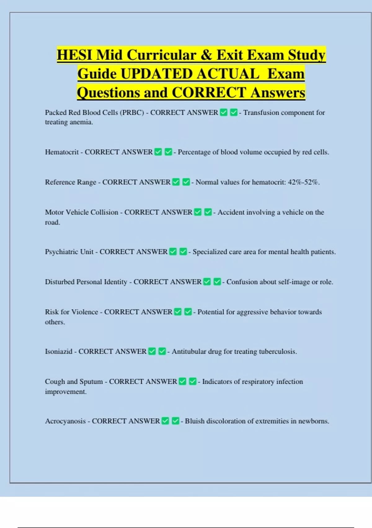 HESI Mid-Curricular Bundled Exam Questions WITH CORRECT Answers