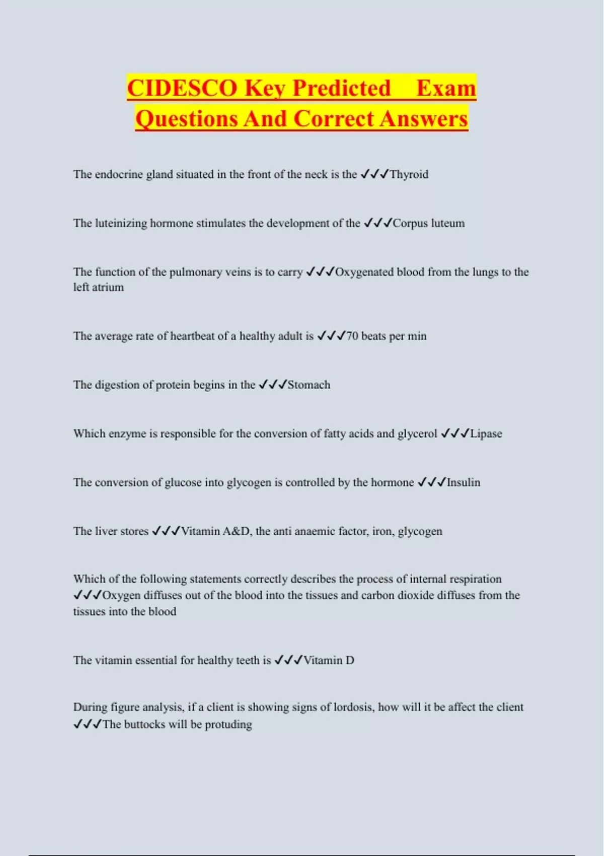 CIDESCO Bundled Exam Questions WITH CORRECT Answers
