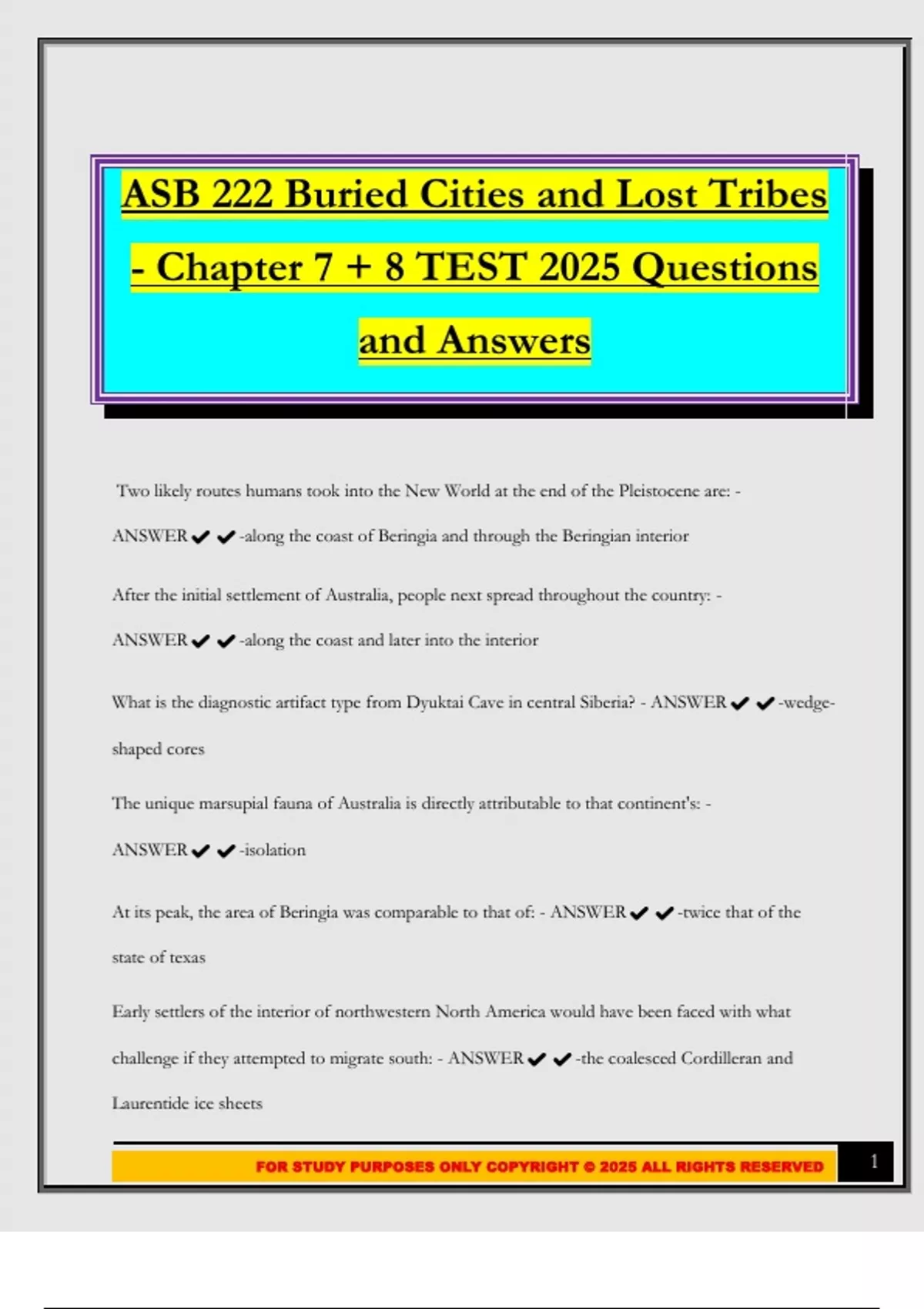 ASB 222 Buried Cities and Lost Tribes - Chapter 7 + 8 TEST 2025 Questions and Answers