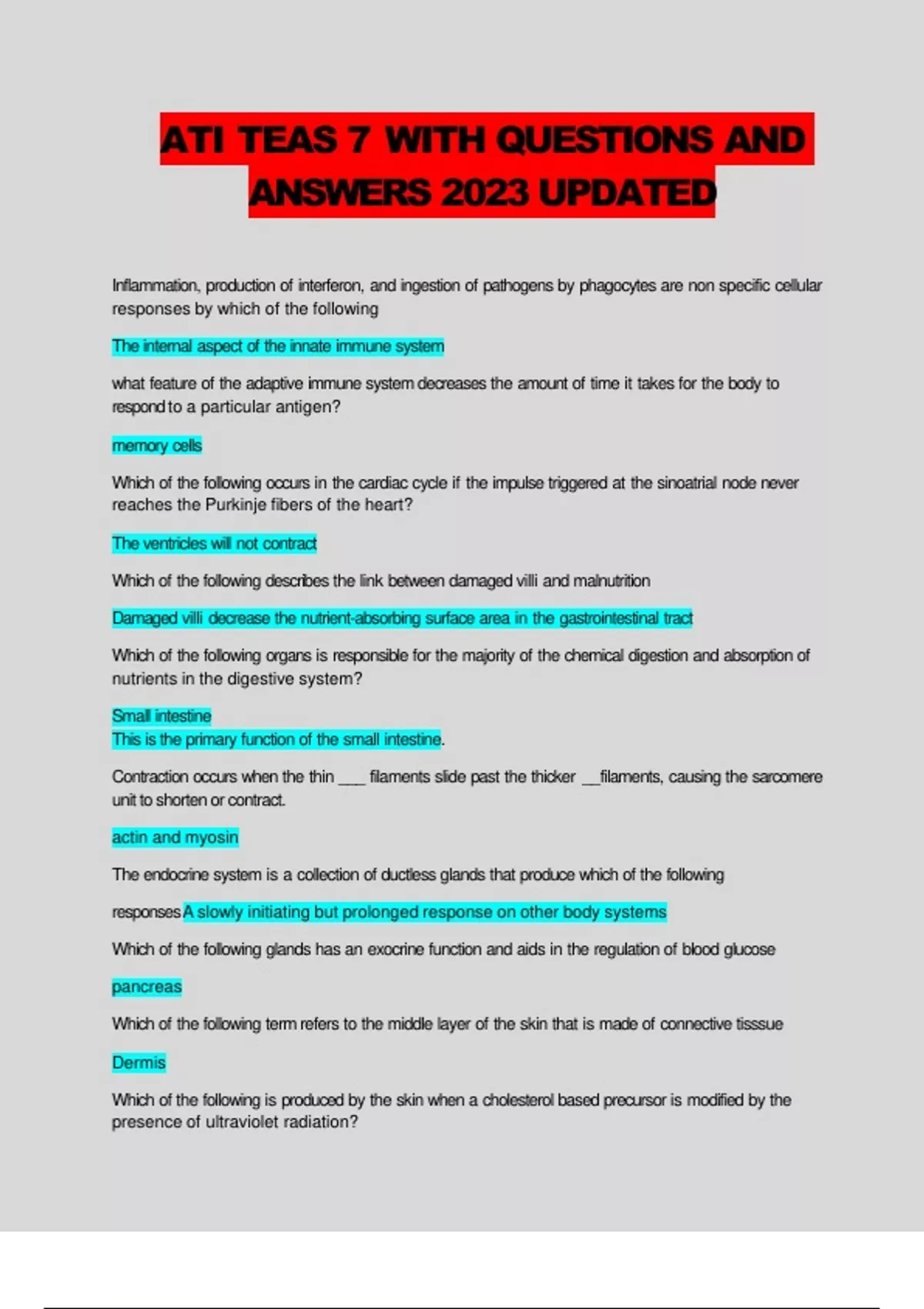 ATI TEAS 7 WITH QUESTIONS AND ANSWERS 2024 UPDATED