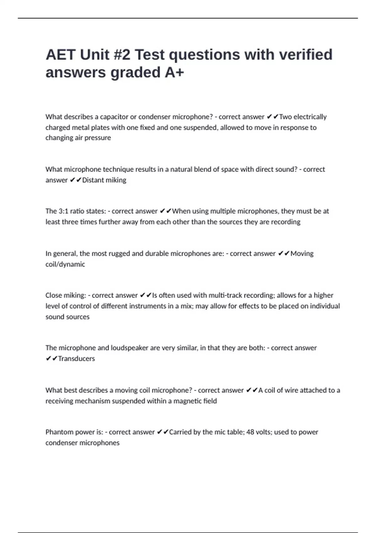 1 Exam (elaborations) AET Test 3 questions and answers graded A+ latest update 2 Exam (elaborations) AET Unit 3 Test questions well answered to pass 3 Exam (elaborations) AET Test 4 (questions n answers) already passed 4 Exam (elaborations) AET Exam 2 (Lechner, Belmont) questions & answers already passed