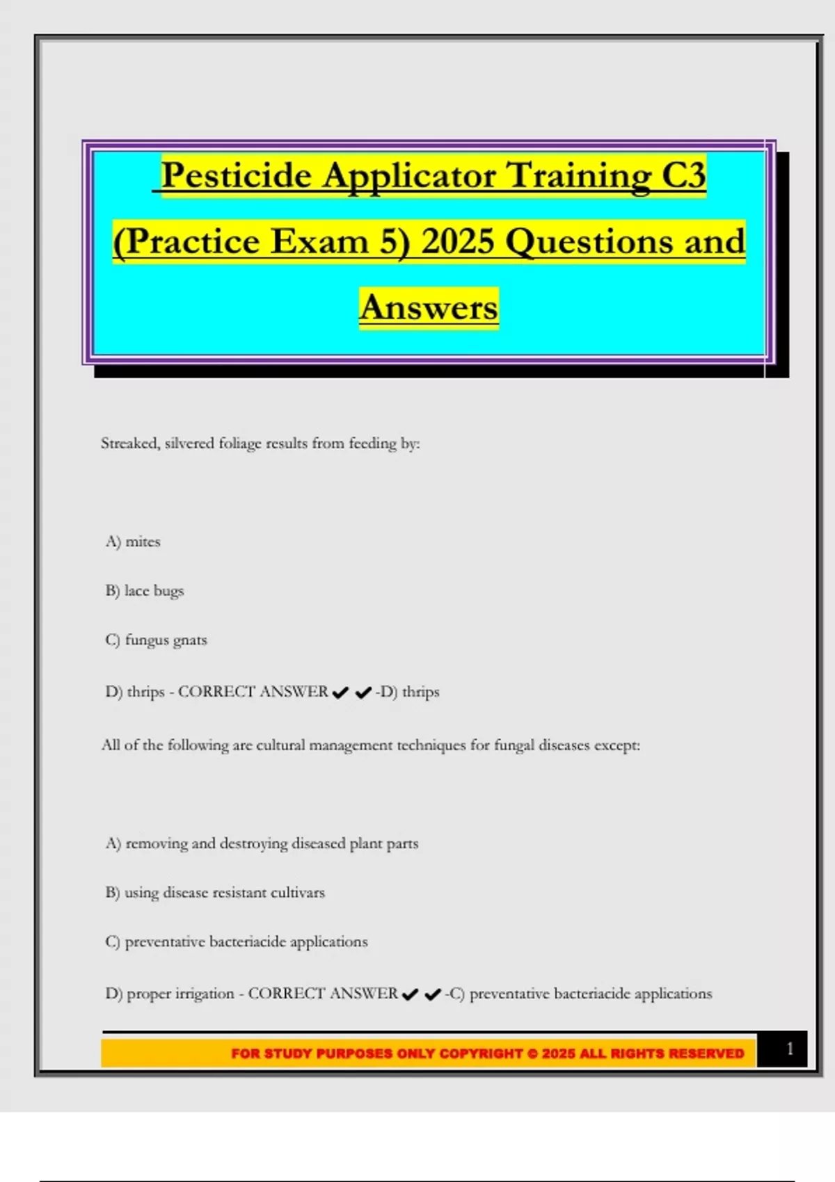 Pesticide Applicator Training C3 (Practice Exam 5) 2025 Questions and Answers