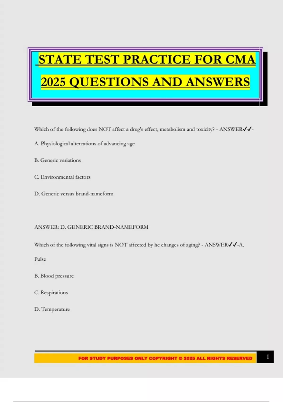 STATE TEST PRACTICE FOR CMA 2025 QUESTIONS AND ANSWERS