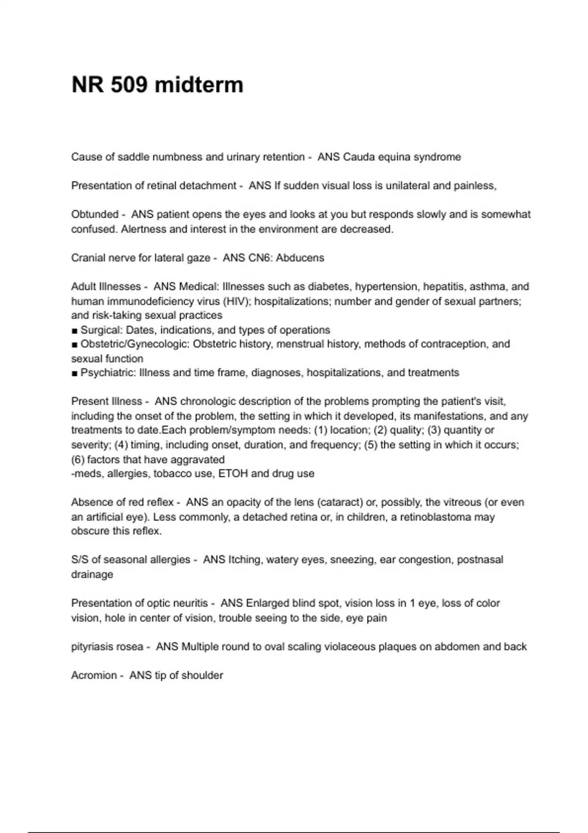NR 509/ NR509 Midterm Exam Advanced Physical Assessment Study Bundle