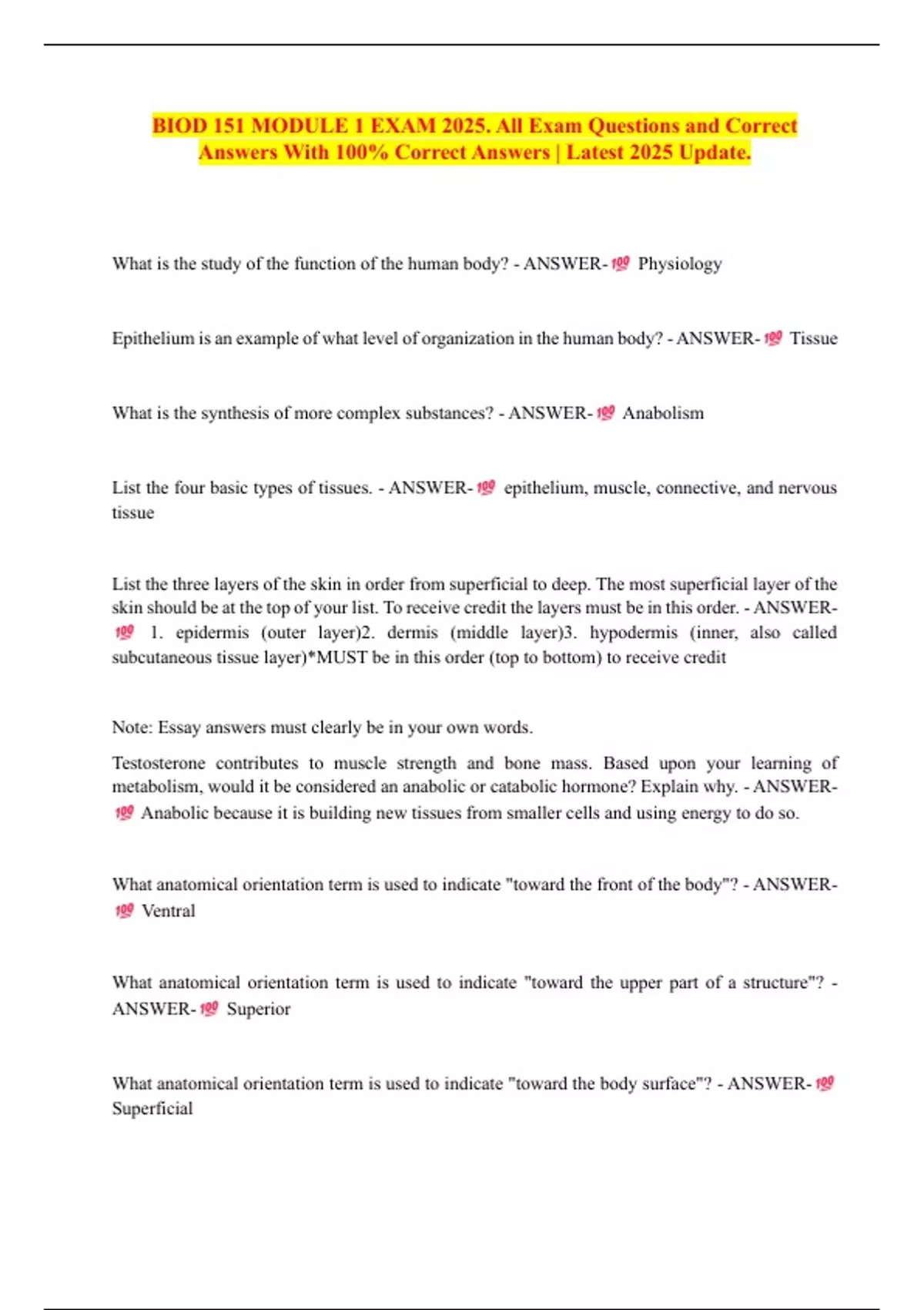 BIOD 151 Module 2 Exam Questions 2025. All Exam Questions and Correct Answers With 100% Correct Answers | Latest 2025 Update.