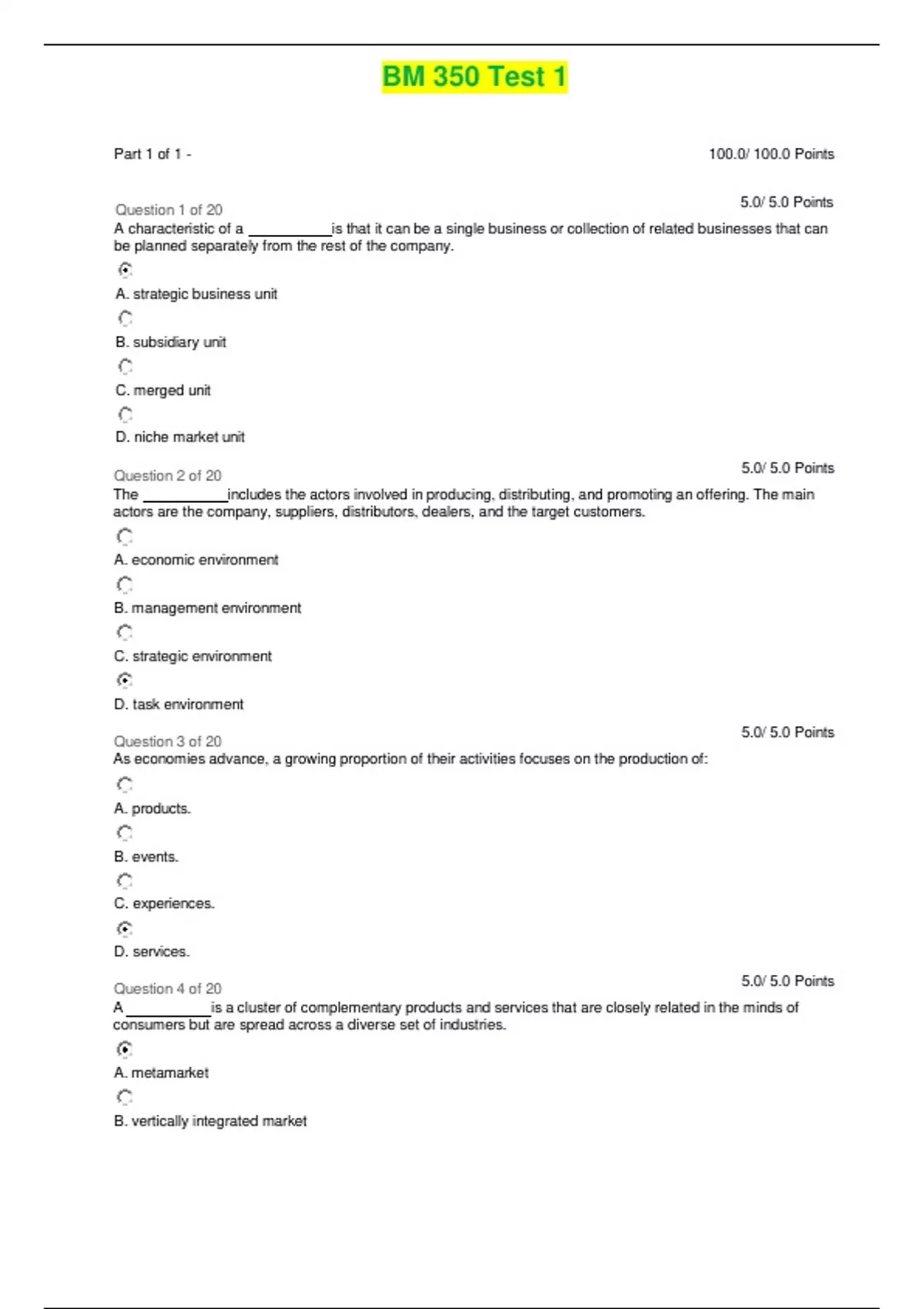 BM 350 Test 2 | Score 100/100 | Ashworth College