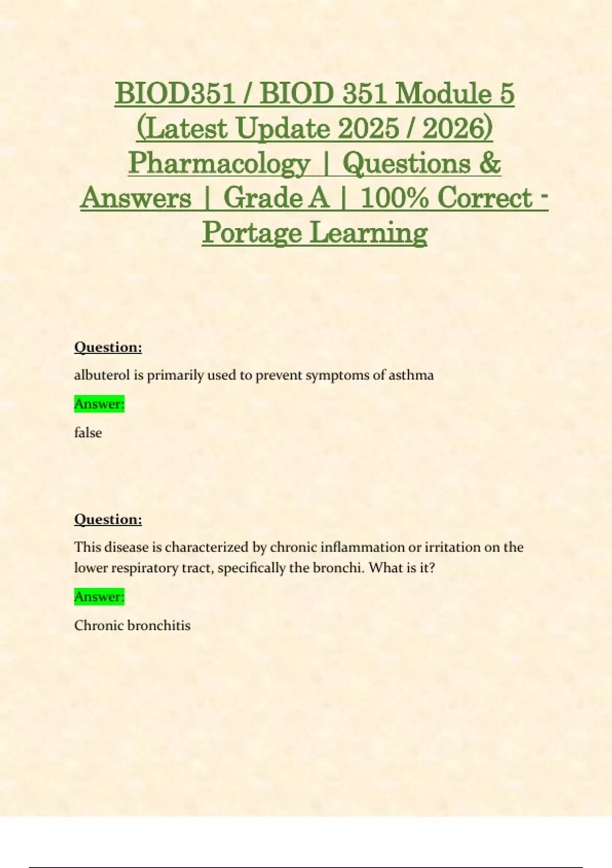 BIOD351 / BIOD 351 Module 1, 2, 3, 4, 5, 6, 7, 8 & 9 Exams: (Latest 2025 / 2026 Updates STUDY BUNDLE PACKAGE) Pharmacology | Questions & Answers | Grade A | 100% Correct - Portage Learning