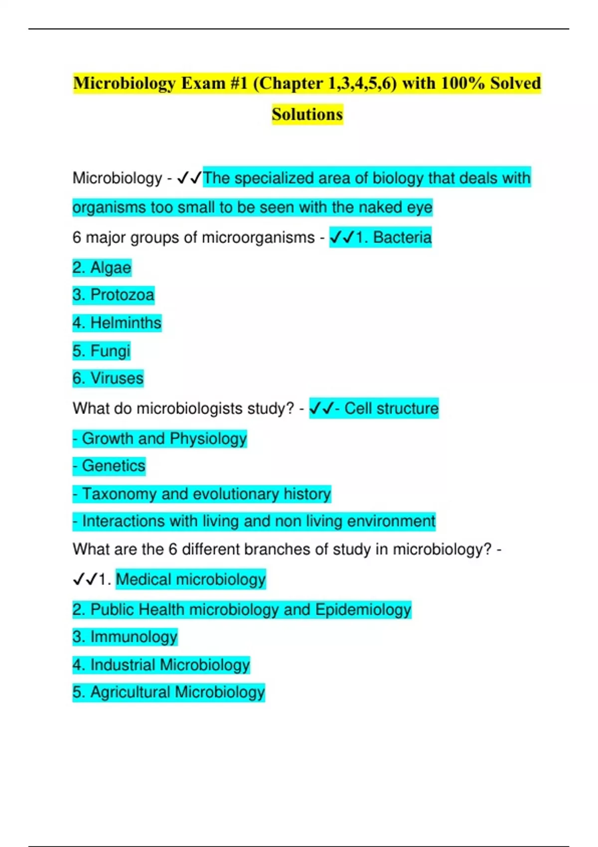 MICROBIOLOGY LAB EXAMS 100% SOLVED/ GUARANTEED PASS/A+ GRADE /LATEST UPDATE 2024/2025