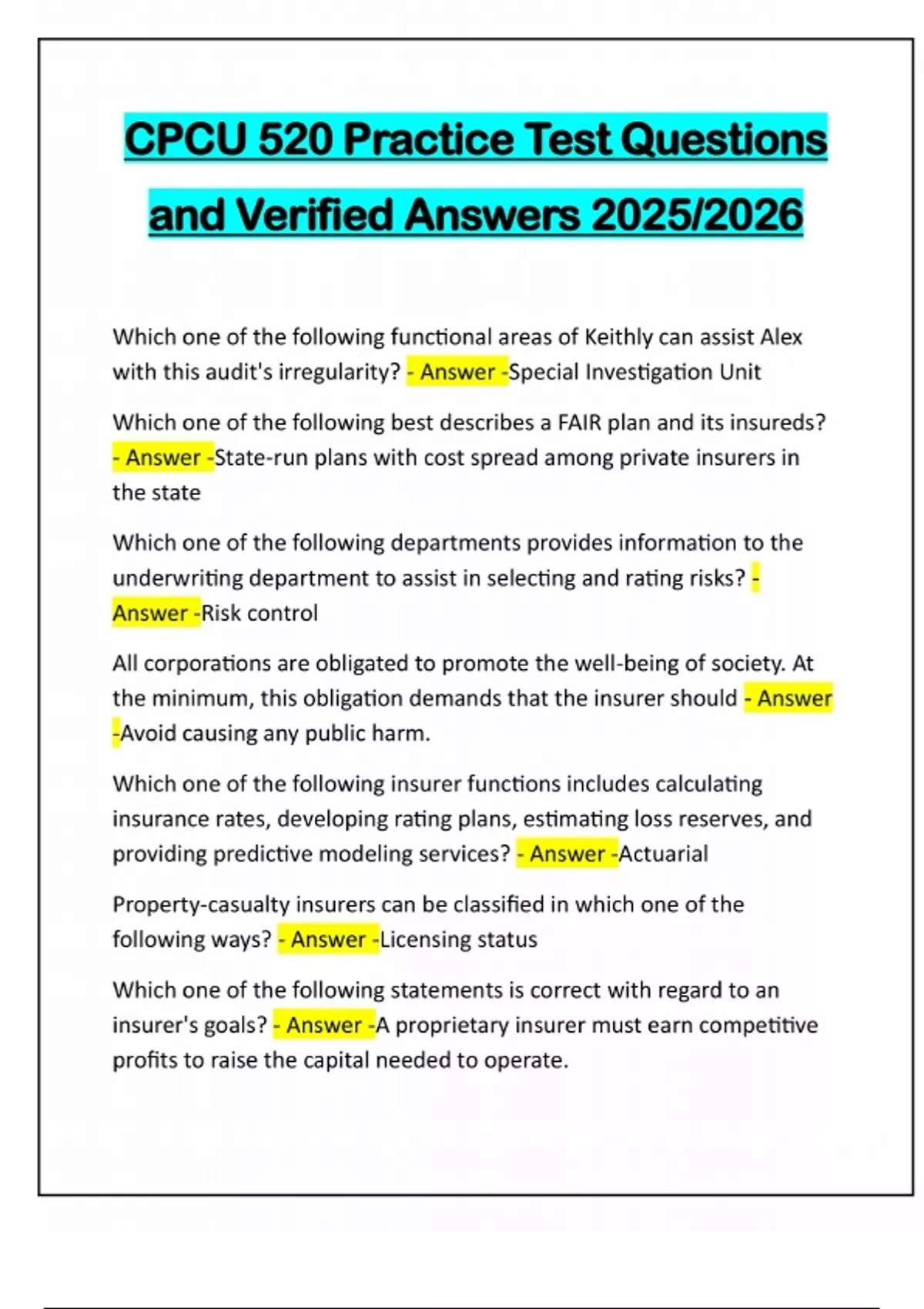 CPCU 520 EXAM QUESTIONS AND ANSWERS SOLVED CORRECTLY/2025 UPDATE