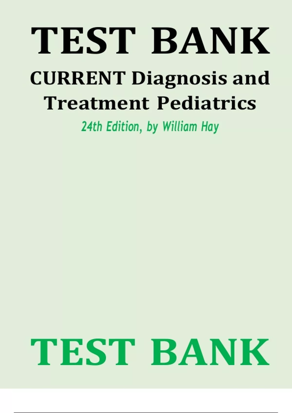 TEST BANKS FOR CURRENT DIAGNOSIS & TREATMENT PEDIATRICS 26TH EDITION BY MAYA BUNIK; WILLIAM W. HAY ISBN 10; 1264269986 /ISBN-13; 978-1264269983