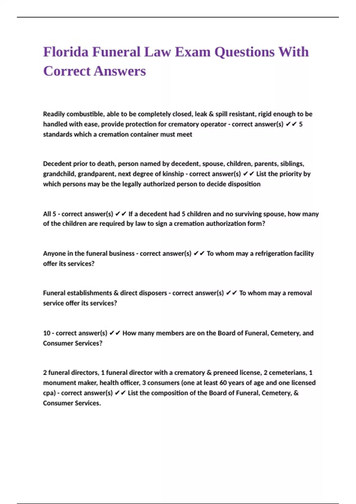 Florida Funeral Laws and Rules Exam Questions With Correct Answers