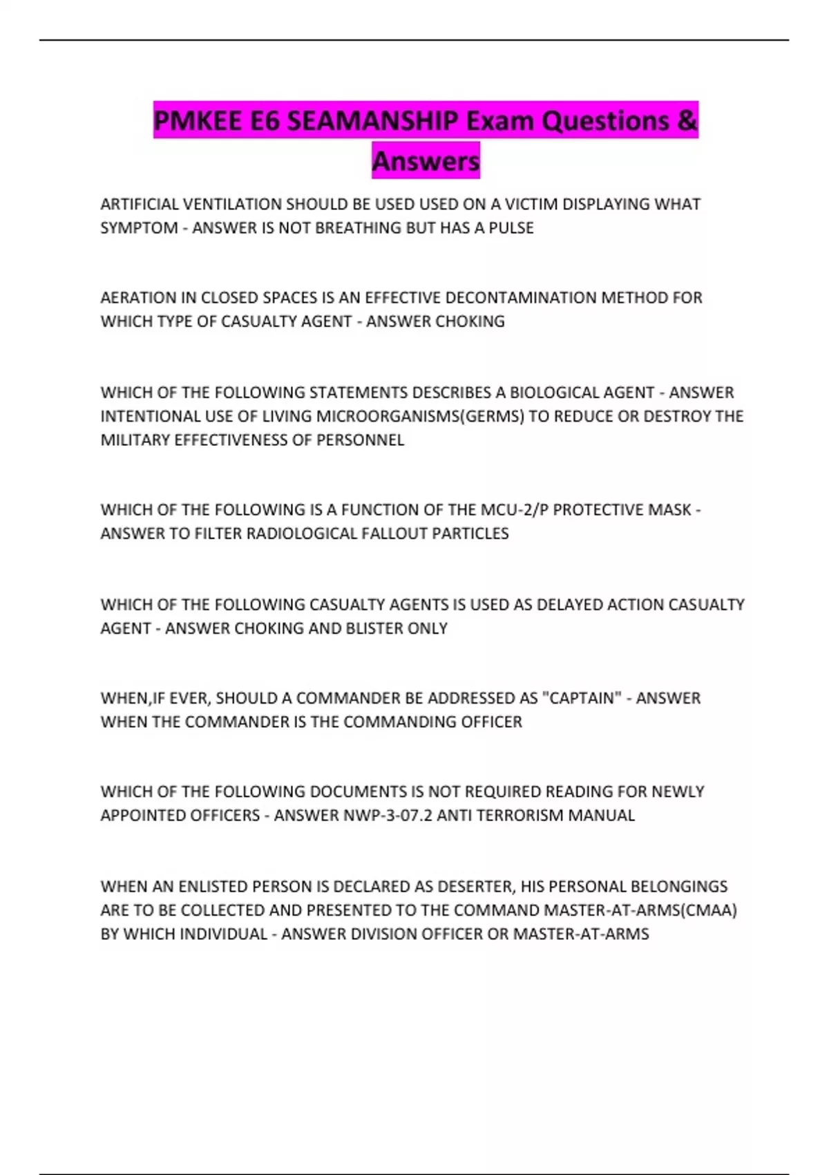 PMKEE E6 SEAMANSHIP TEST Questions & Answers