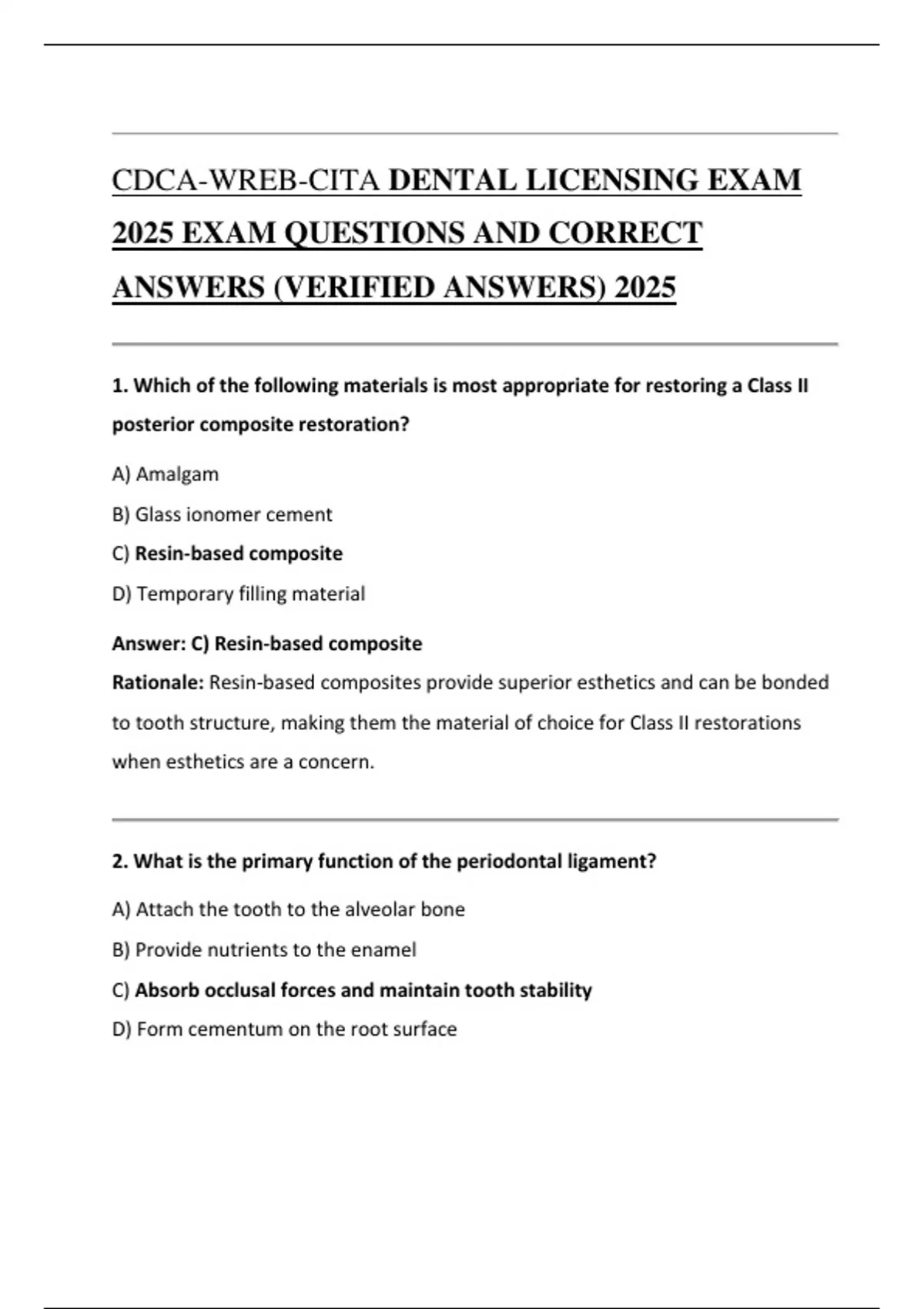 CDCA-WREB-CITA DENTAL LICENSING EXAM 1 , 2 , AND 3 2025 EXAMS BUNDLE QUESTIONS AND CORRECT ANSWERS (VERIFIED ANSWERS) 2025