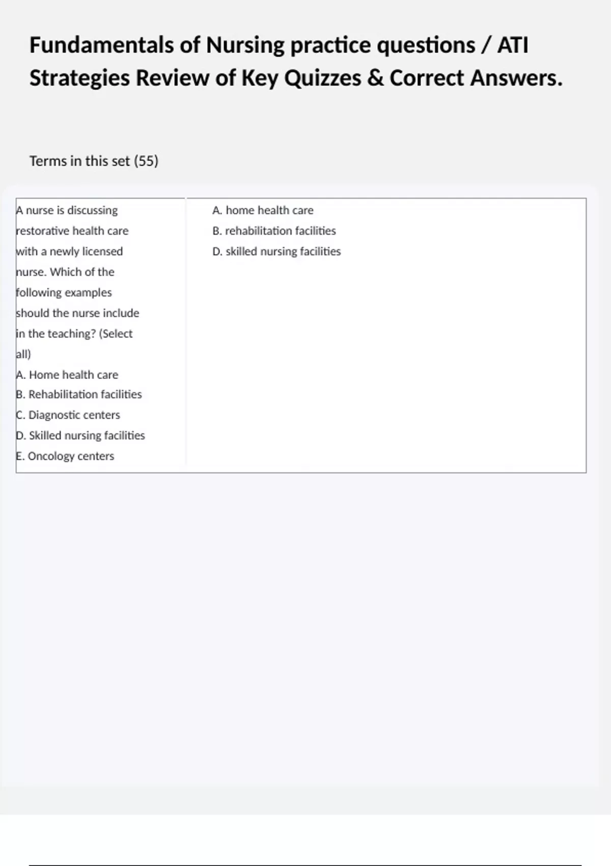 ATI - Nursing Foundations Test / Exam Questions & Detailed Solutions. Quiz____? A nurse is caring for a client who tells the nurse they want to quit smoking. The nurse provides the client with information about smoking cessation and other ways to imp 2 Exam (elaborations) ATI Fundamentals of Nursing practice questions /Certified Exam Q&A / 2025. Q