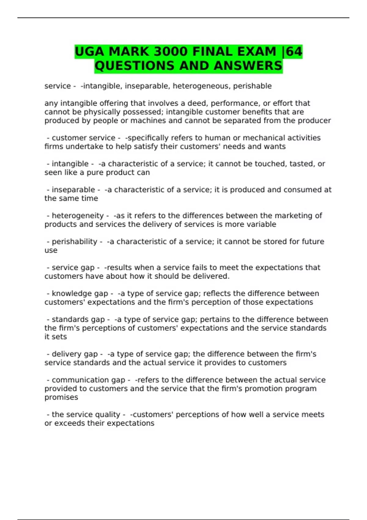 MARKETING (MARK) 3000 EXAMS - QUESTIONS AND ANSWERS - BUNDLE