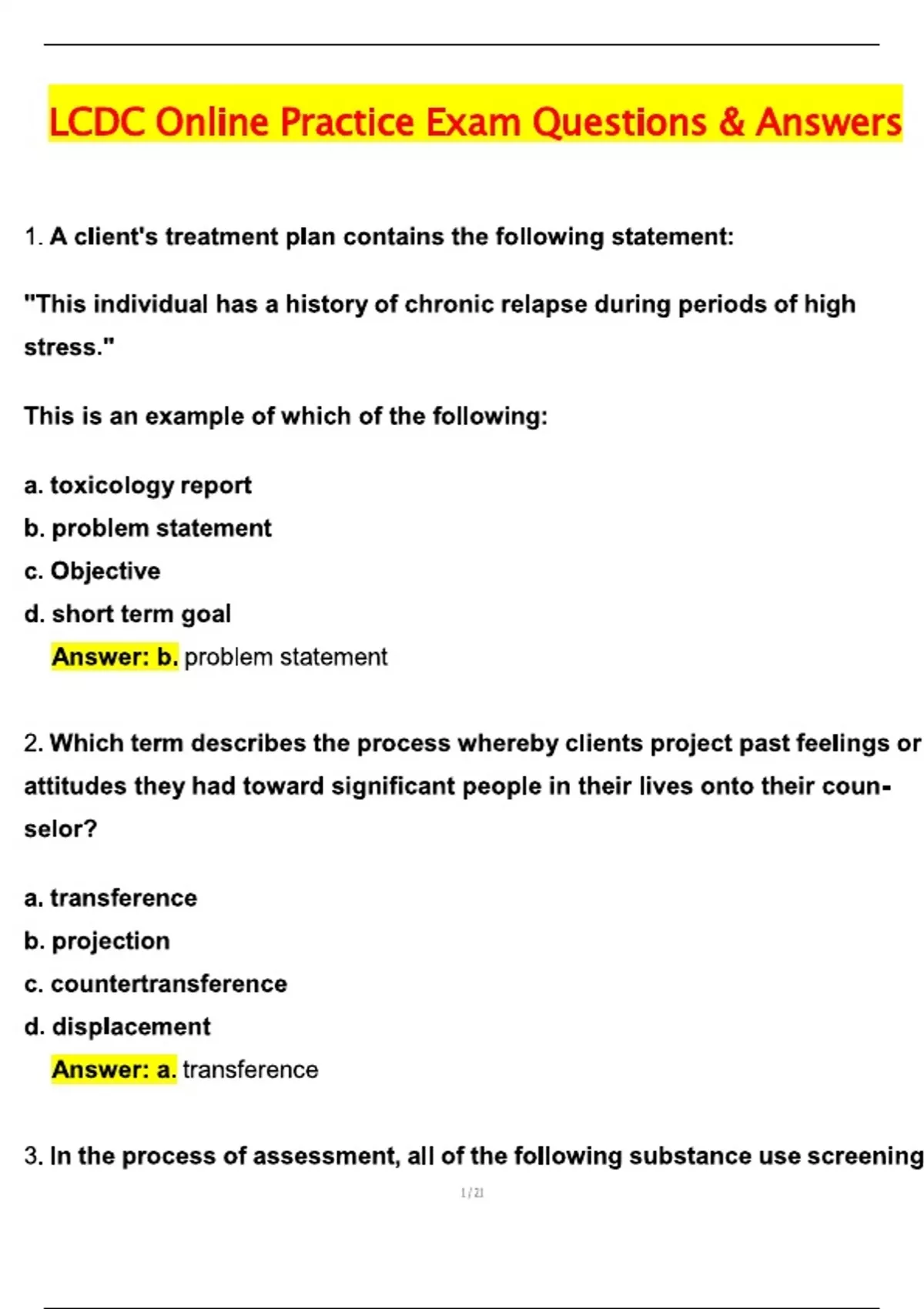 LCDC BUNDLED Actual Exams LCDC Online Practice Exam LCDC Practice Test LCDC Quiz 3 (Study Manual) Newest 2025 Questions and Answers Latest (2025 / 2026) (Verified Answers)