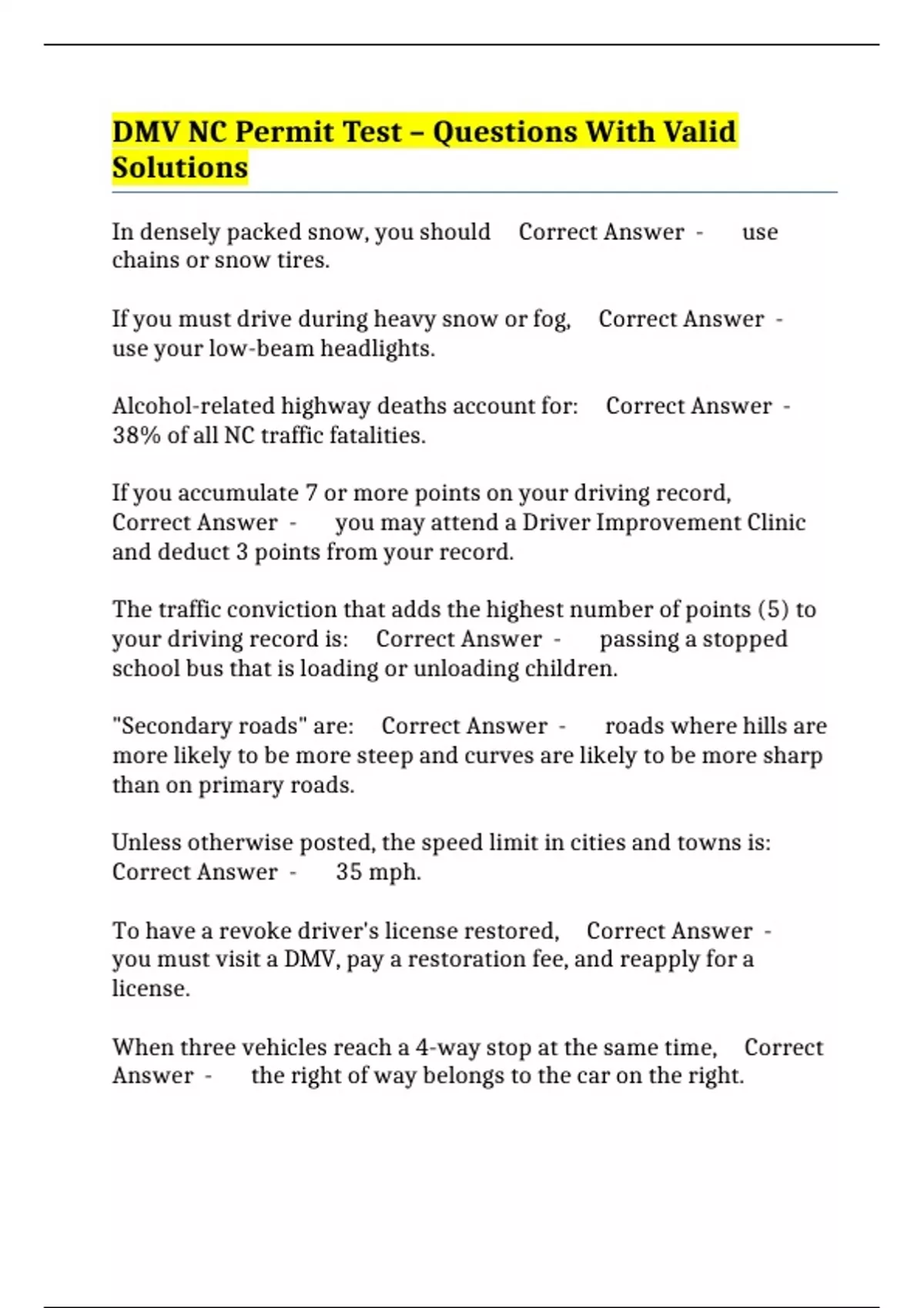 VALUE PACK::- NC DMV PERMIT TESTS