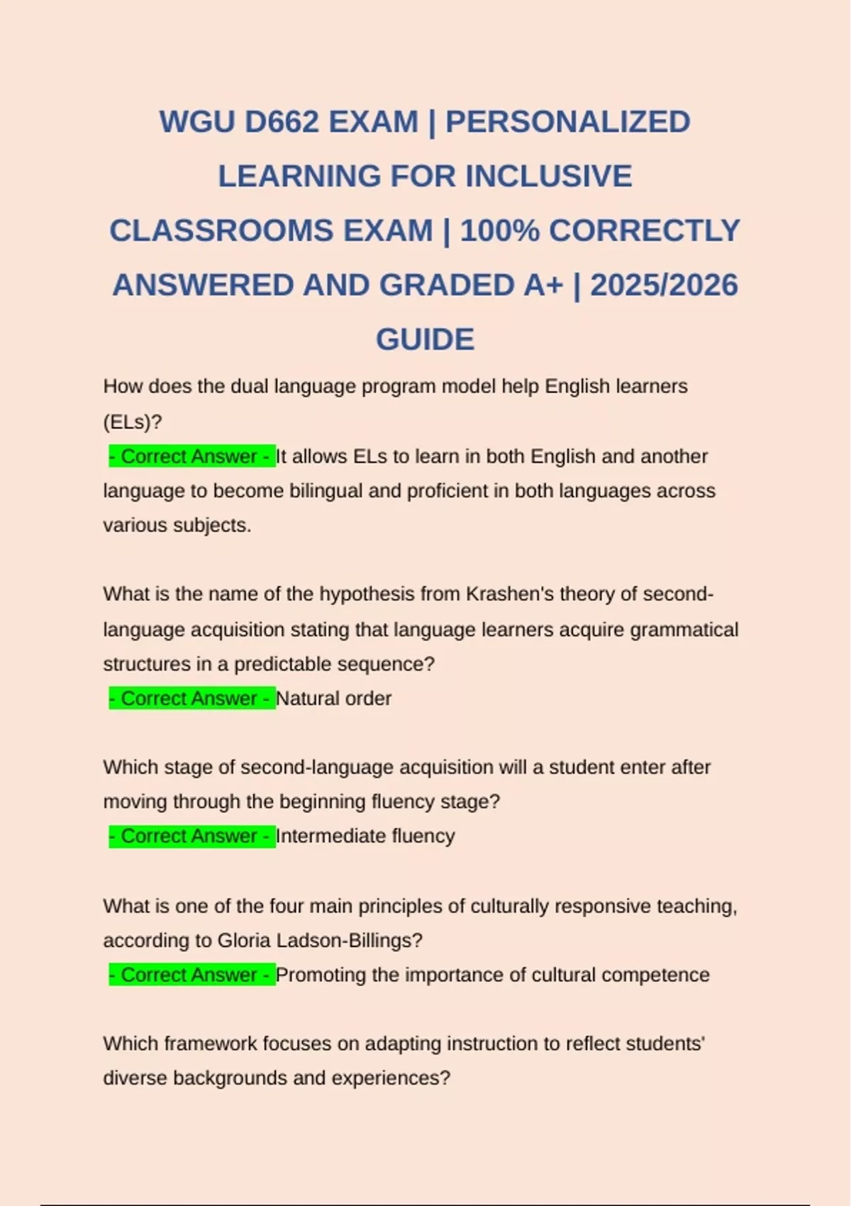 WGU D662 EXAM | PERSONALIZED LEARNING FOR INCLUSIVE CLASSROOMS EXAM | 100% CORRECTLY ANSWERED AND GRADED A+ | 2025/2026 GUIDE