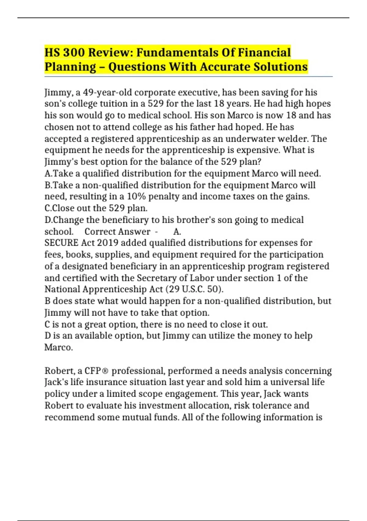 BUNDLE::- HS 300 FUNDAMENTALS OF FINANCIAL PLANNING EXAMS