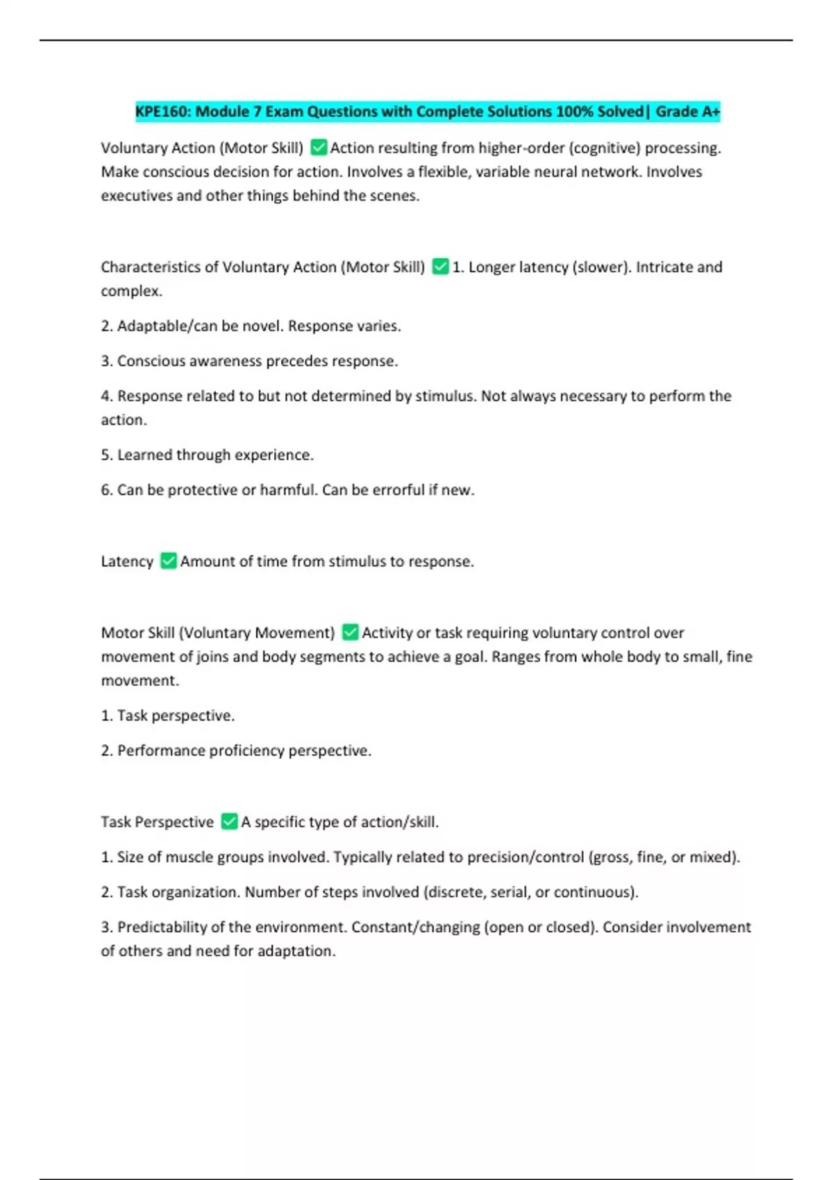 KPE160: Module 7 Exam Questions with Complete Solutions 100% Solved| Grade A+
