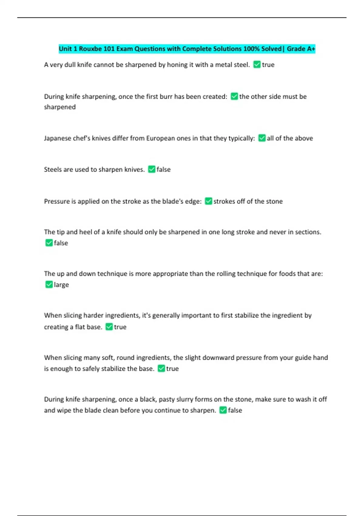PACKAGE-::Rouxbe Exams with Verified Solutions