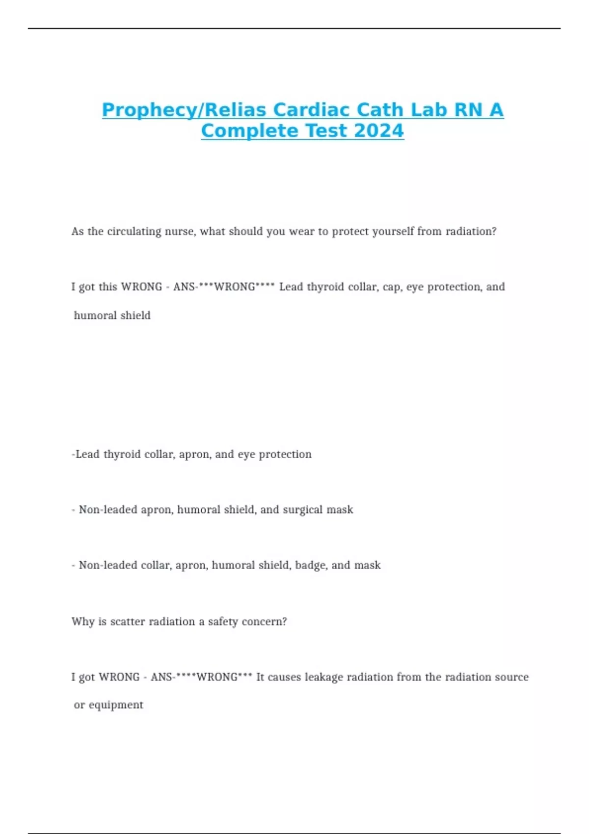 Prophecy RN Pharmacology A Prophecy Exam Had 39 ,Prophecy/Relias Cardiac Cath Lab RN A Complete Test 2025 SolutionsProphecy/Relias Cardiac Cath Lab RN A Complete Test 2025 Solutions