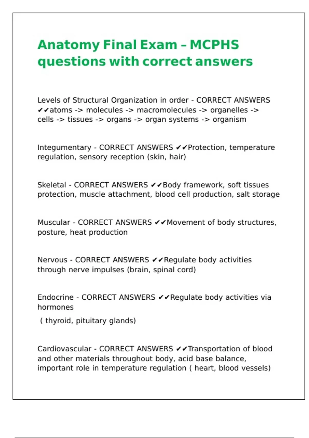 MCPHS Anatomy & Physiology Exam study pack with solutions