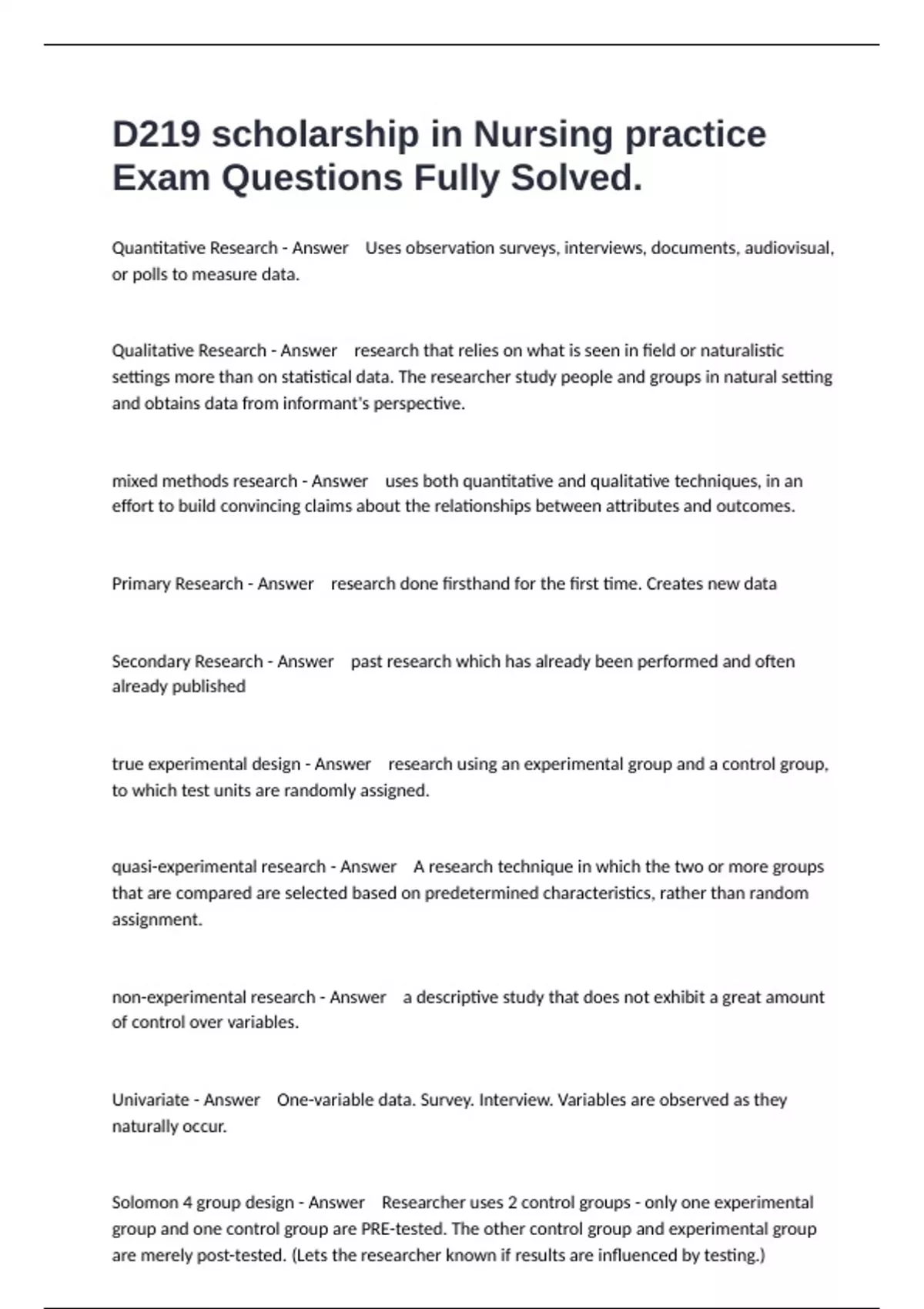 1 Exam (elaborations) Chapter 24: Preventing Workplace Violence Test Questions And 100% Correct Answers. 2 Exam (elaborations) Unit 6: Translation 6.5 knowledge check Questions And Correct Answers. 3 Exam (elaborations) Foundations of Global Health Exam 1 And Actual Answers.