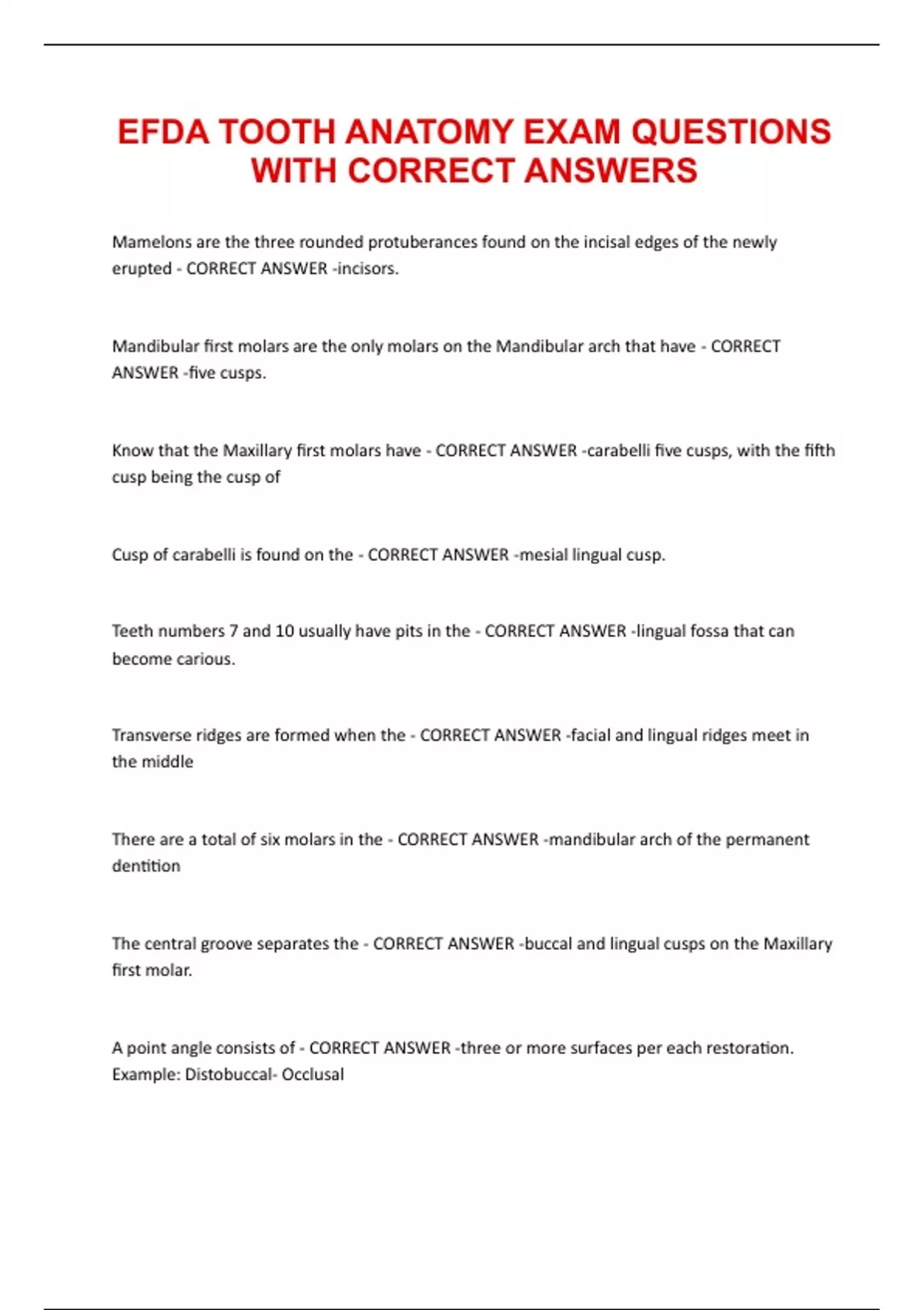 EFDA TOOTH ANATOMY EXAM QUESTIONS WITH CORRECT ANSWERS 2025