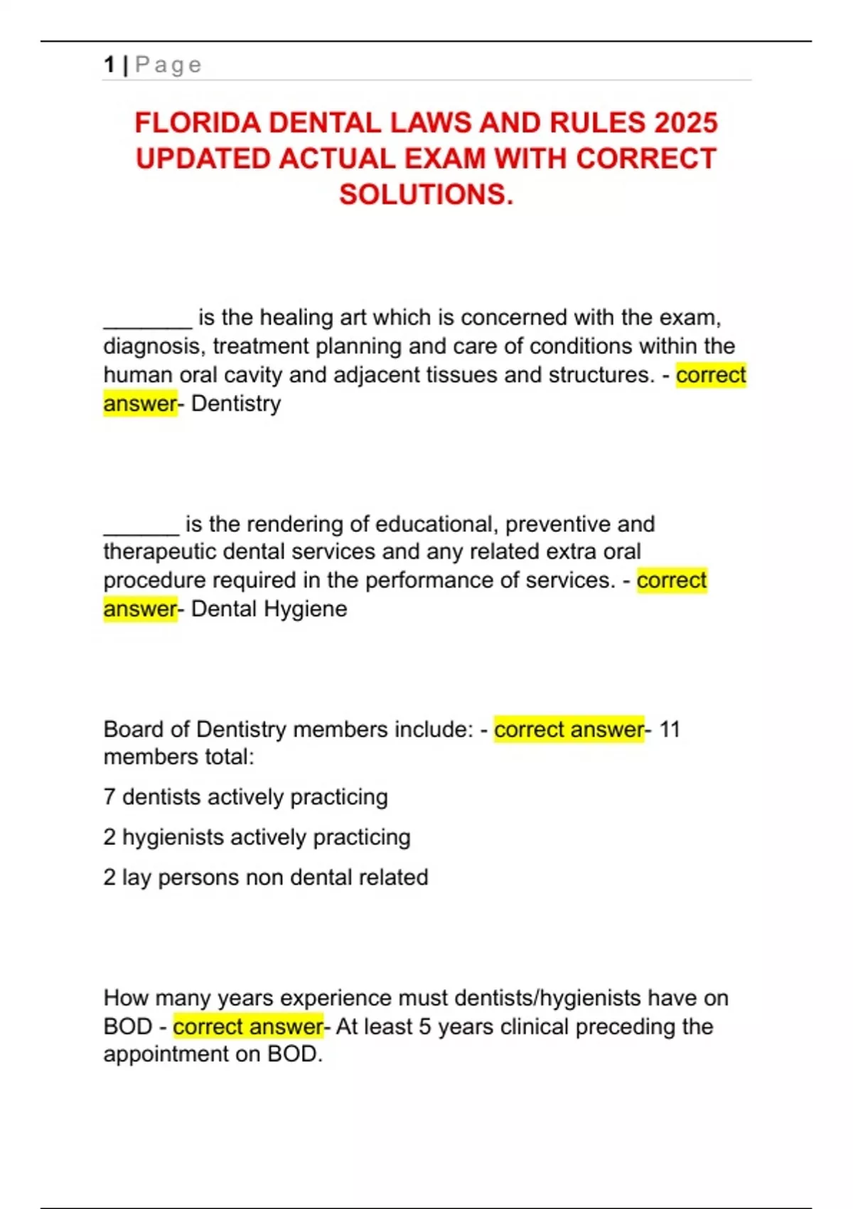 FLORIDA DENTAL LAW 2025 exam package deal graded A+
