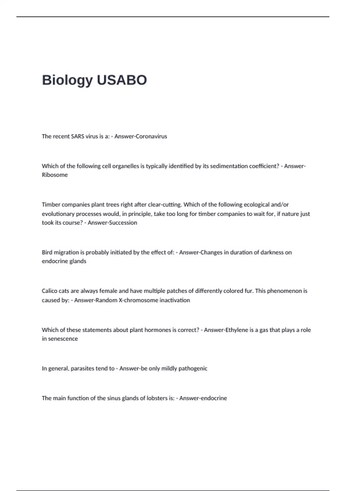 Biology USABO Exam Questions and Answers,Indicator Tests Questions and Answers - USABO,USABO Open Exam Questions and Answers,USABO Open Exam Questions -SOLVED,USABO Exam Questions and Answers-Plant Form and Function,USABO Practice Exam Questions and Answers,USABO TEST QUESTIONS AND ANSWERS.