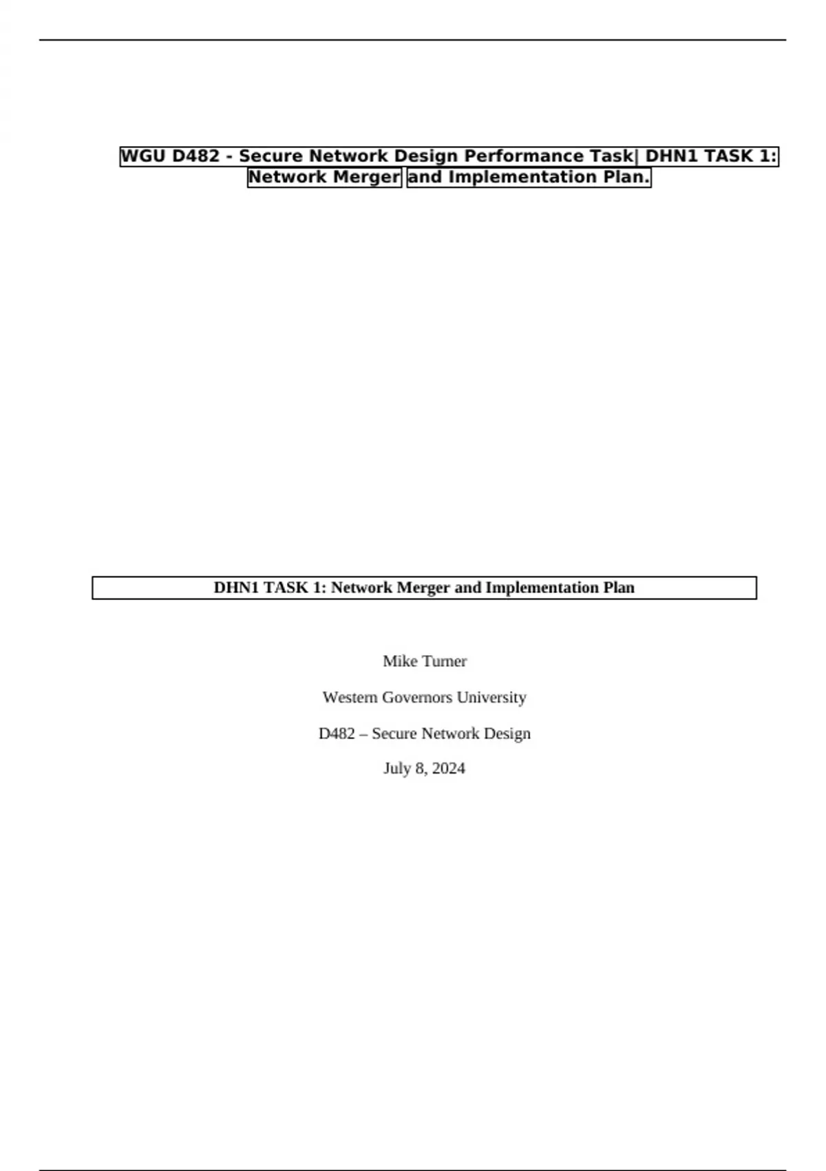 WGU D482 - Secure Network Design Performance Task| DHN1 TASK 1: Network Merger and Implementation Plan.