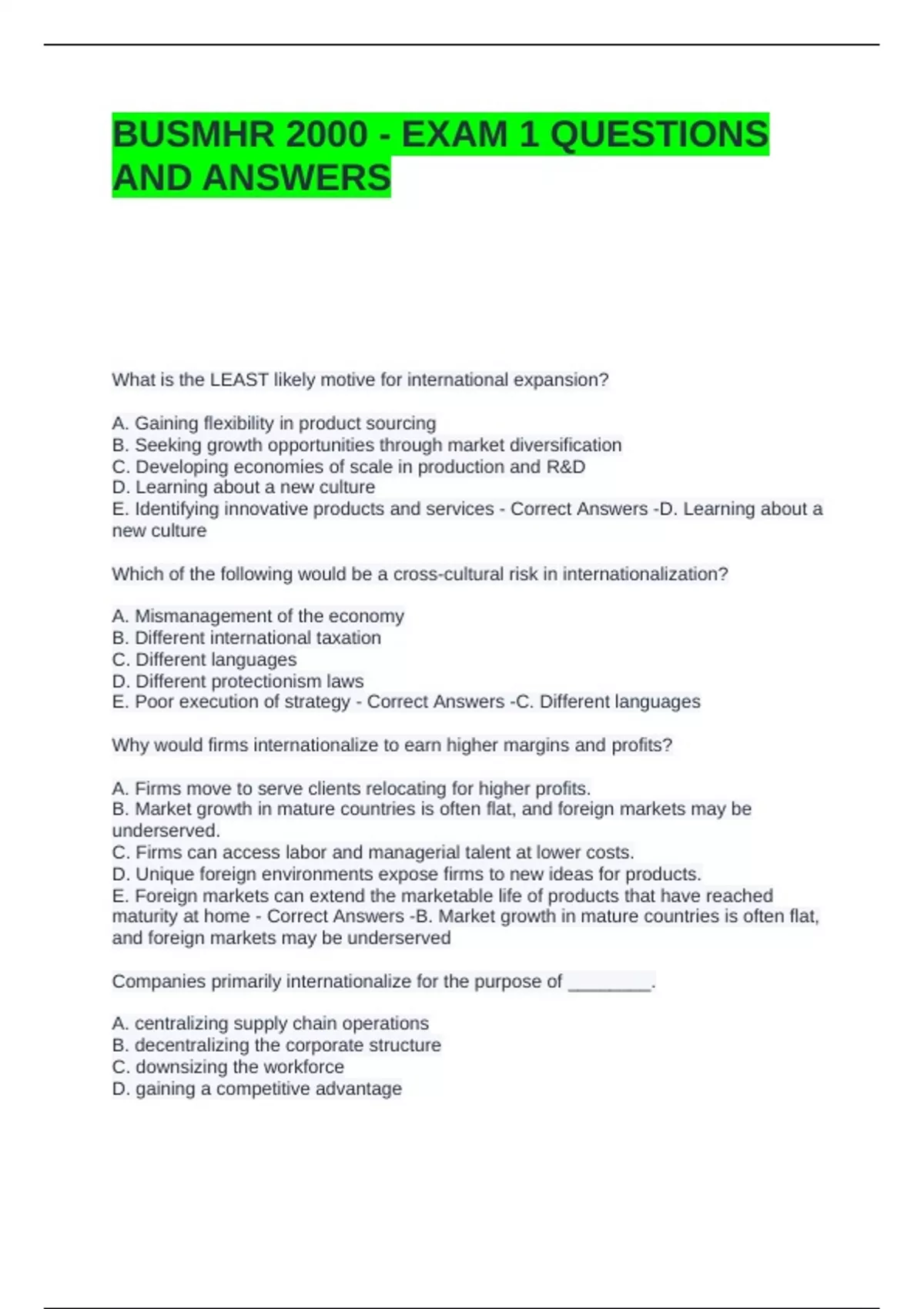 1 Exam (elaborations) OSU BUSMHR 3200 EXAM 3 QUESTIONS AND ANSWERS | GRADED A 2 Exam (elaborations) BUSMHR EXAM #3 STUDY SET WITH COMPLETE SOLUTIONS 3 Exam (elaborations) BUSMHR 4490 EXAM 2 WITH COMPLETE SOLUTIONS 4 Exam (elaborations) BUSMHR 4490 EXAM 2 QUESTIONS AND ANSWERS 5 Exam (elaborations) BUSMHR 4490 EXAM 1 WITH CORRECT ANSWERS 6 Exam