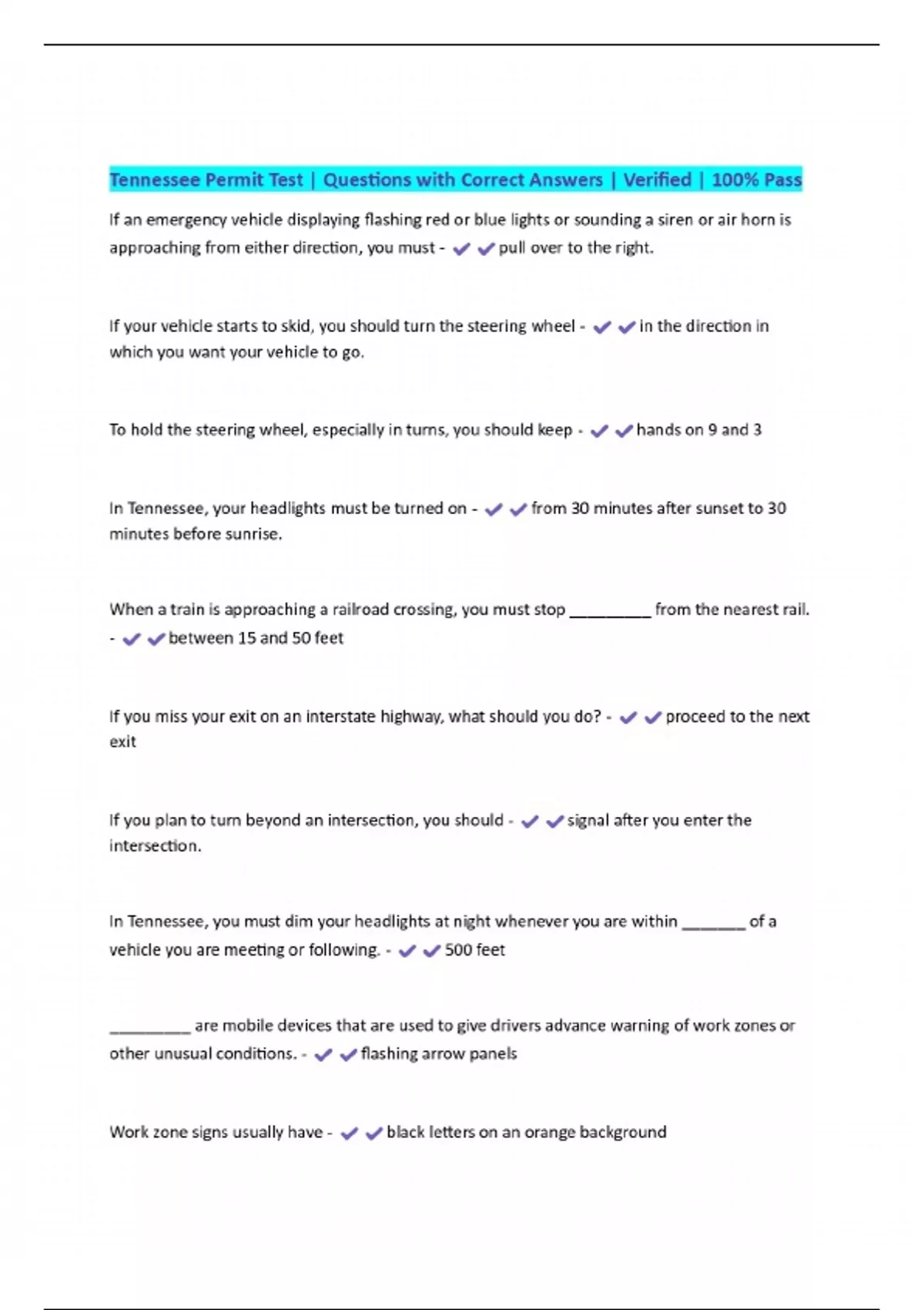 EXAMS BUNDLE:::::Tennessee Permit | Questions with Correct Answers | Complete and Accurate