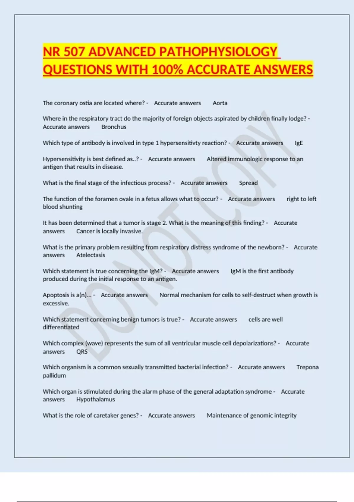 NR507 Advanced Pathophysiology – Week 2: Distribution of Body Fluids – Chamberlain University – 2024/2025 – Questions with 100% Accurate Answers Nursing Pathophysiology – 2024/2025 – Exam Questions with 100% Accurate Answers NR 507: Advanced Pathophysiology – Midterm Exam – Chamberlain University – 2024/2025 – Questions with 100% Accurate Answers