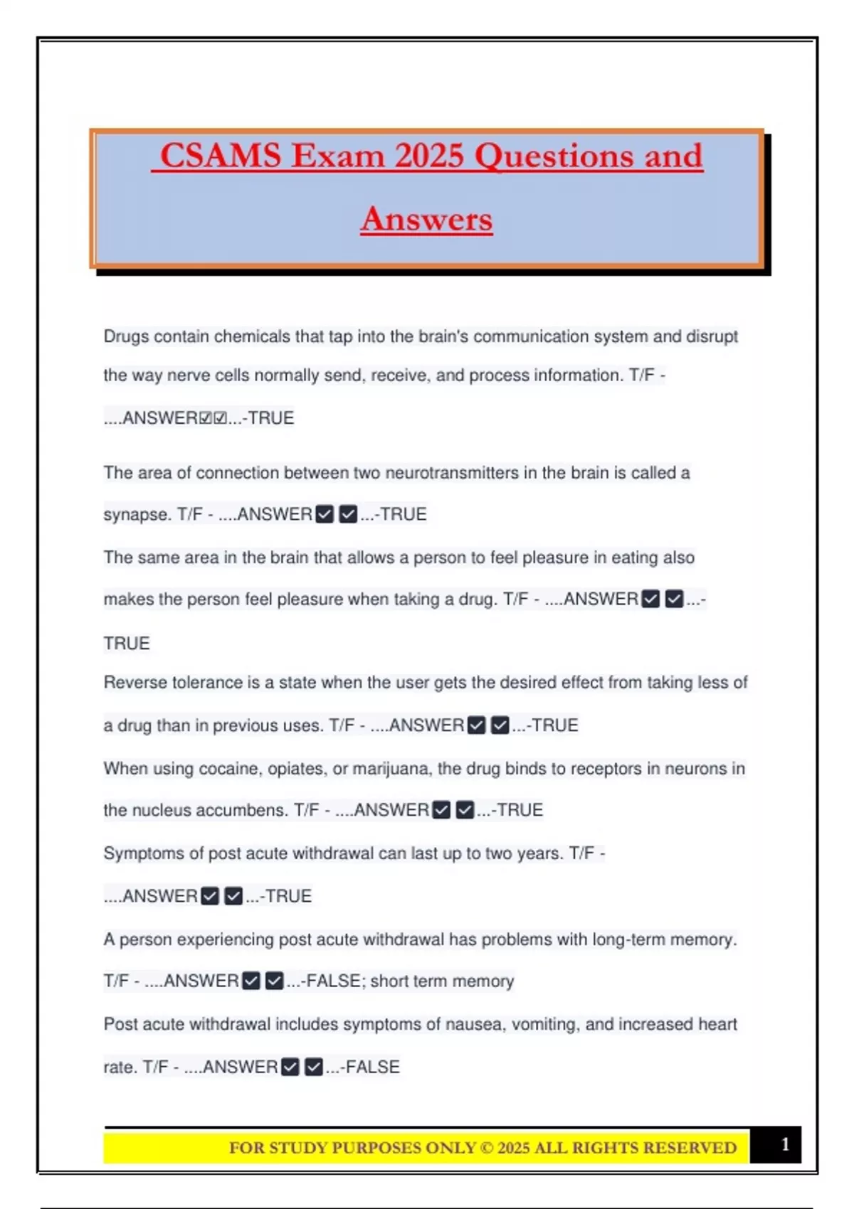 CSAM Bundled Exams 2025 (Questions and Answers) Updated