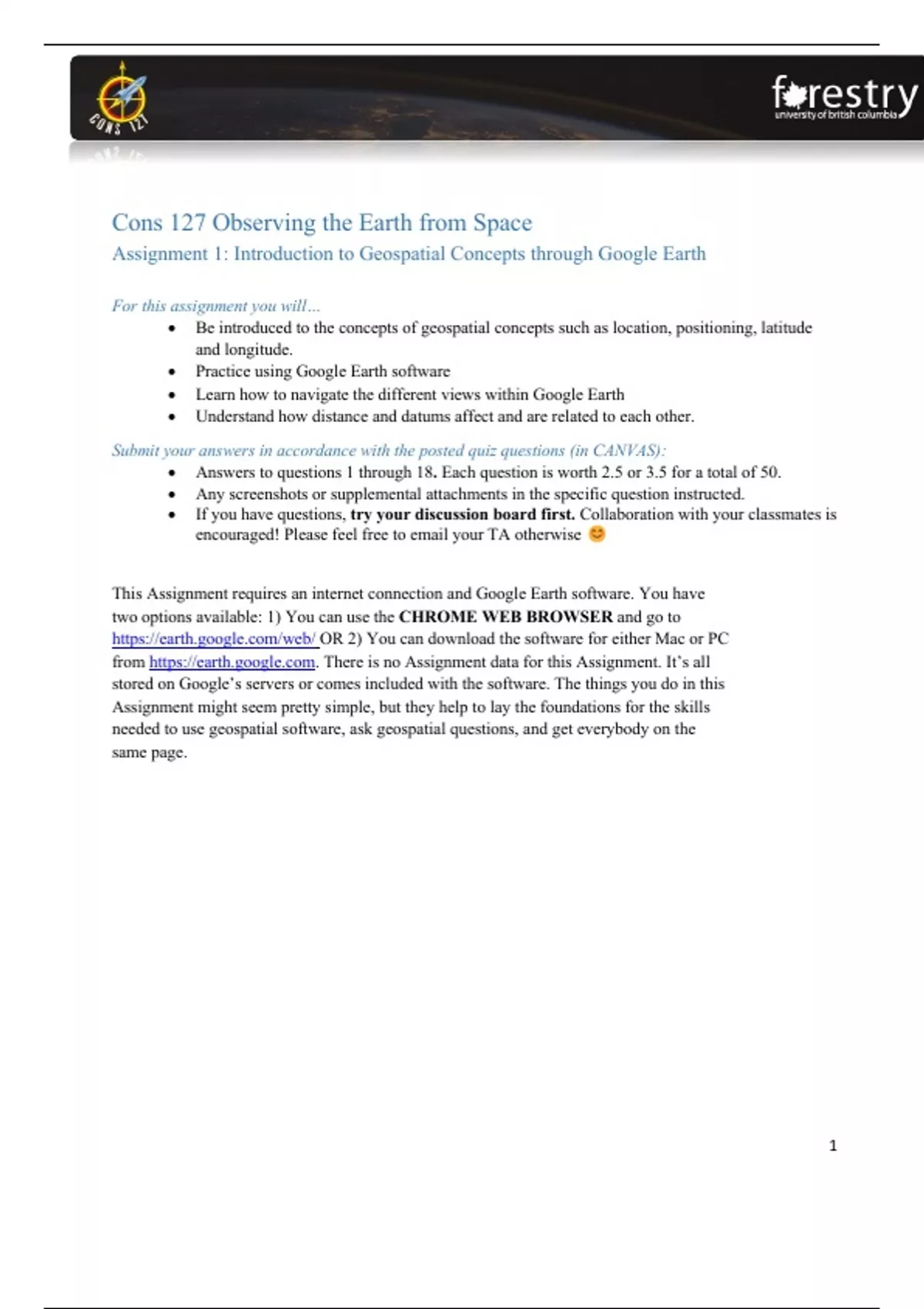 CONS 127 Assignment 2: Where Are You? Google Earth and Geodesy | 2025 Update with complete solutions - University of British Columbia.