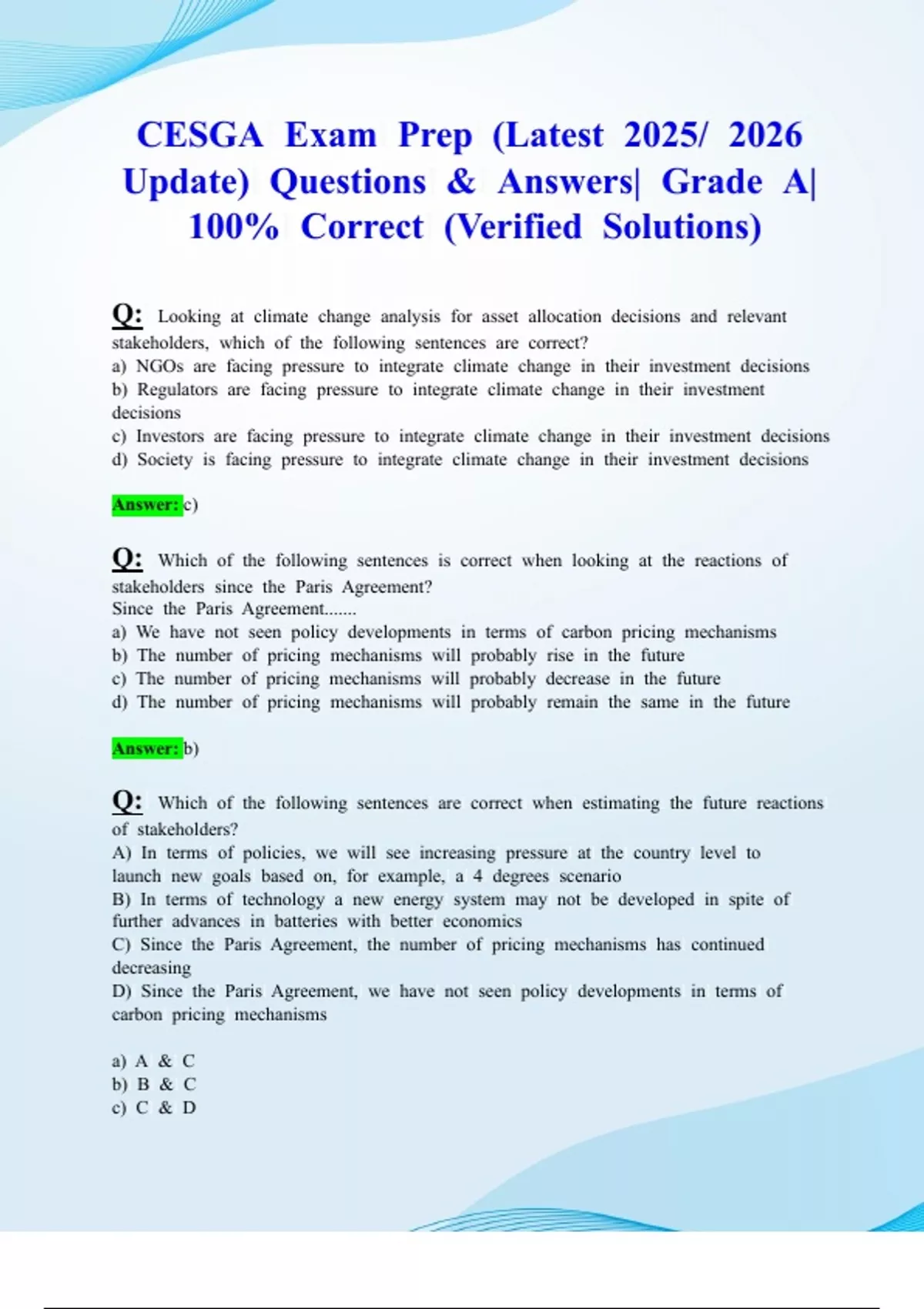 CESGA Exam Prep (Latest 2025/ 2026 Update) Questions & Answers| Grade A| 100% Correct (Verified Solutions)