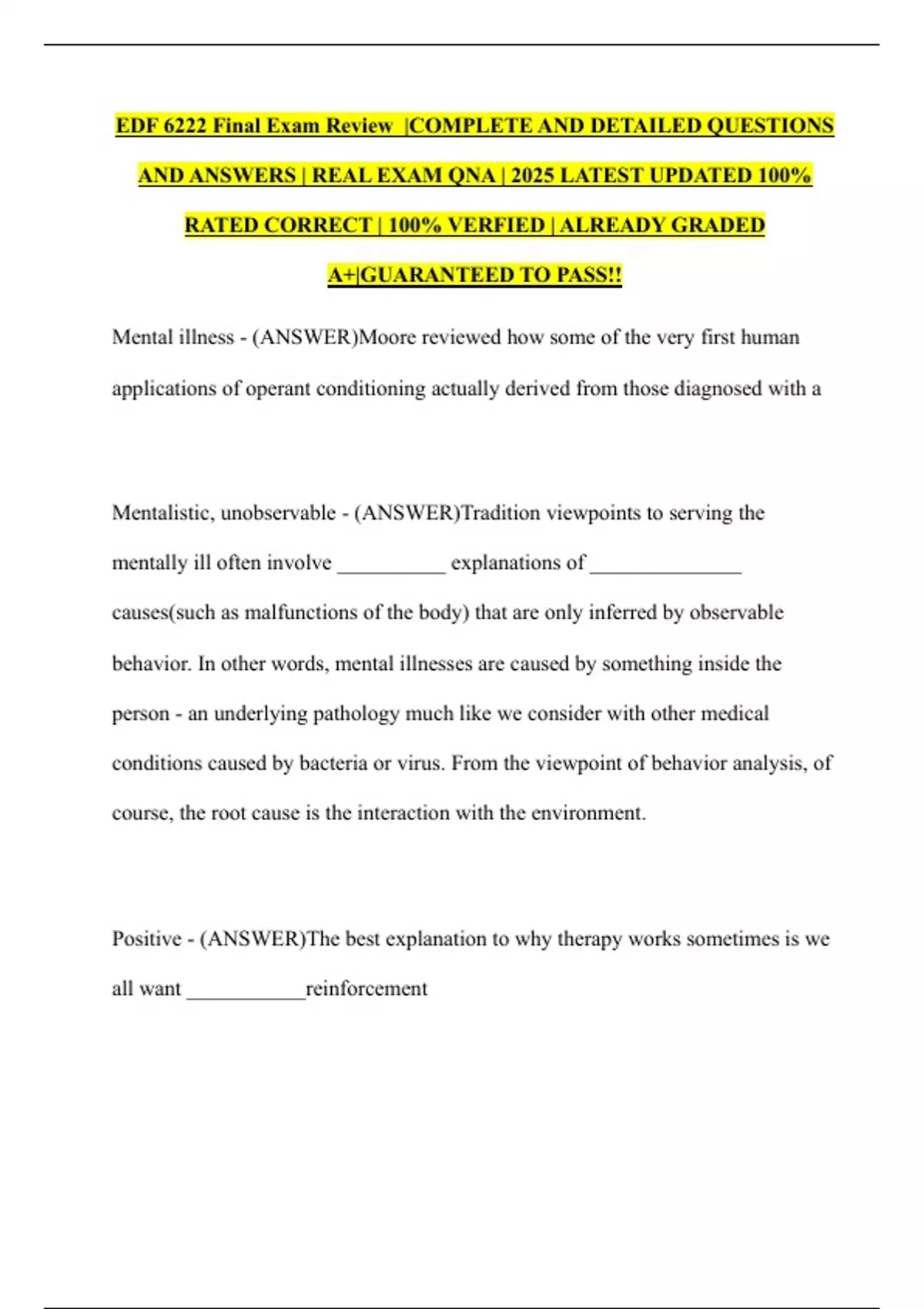 PACKAGE DEAL FOR EDF 6222 Final Exam Review |COMPLETE AND DETAILED QUESTIONS AND ANSWERS | REAL EXAM QNA | 2025 LATEST UPDATED 100% RATED CORRECT | 100% VERFIED | ALREADY GRADED A |GUARANTEED TO PASS!!| 2 VERSIONS