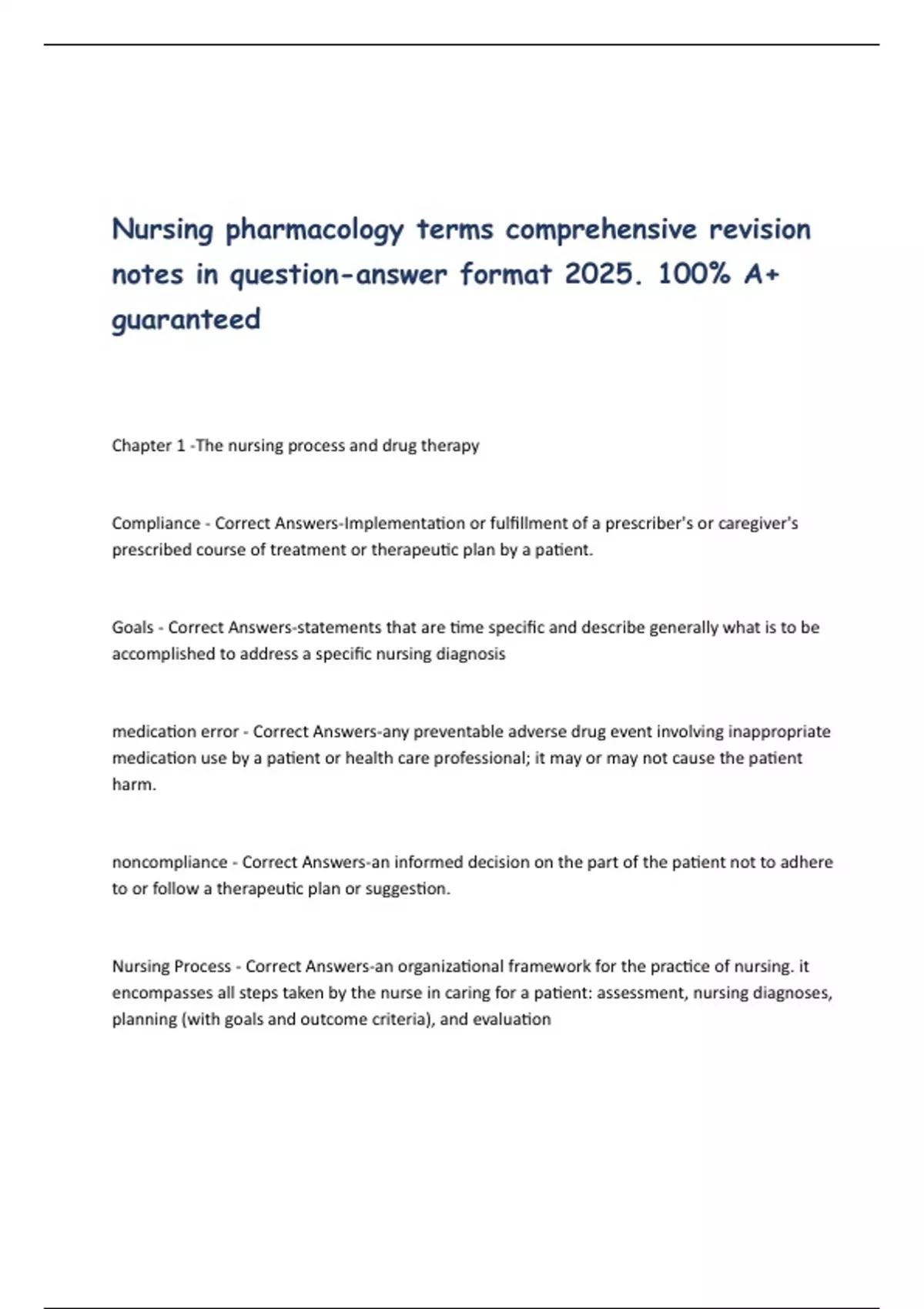 NURSING PHARMACOLOGY REVISION QUESTIONS WITH CERTIFIED CORRECT A+ ANSWERS