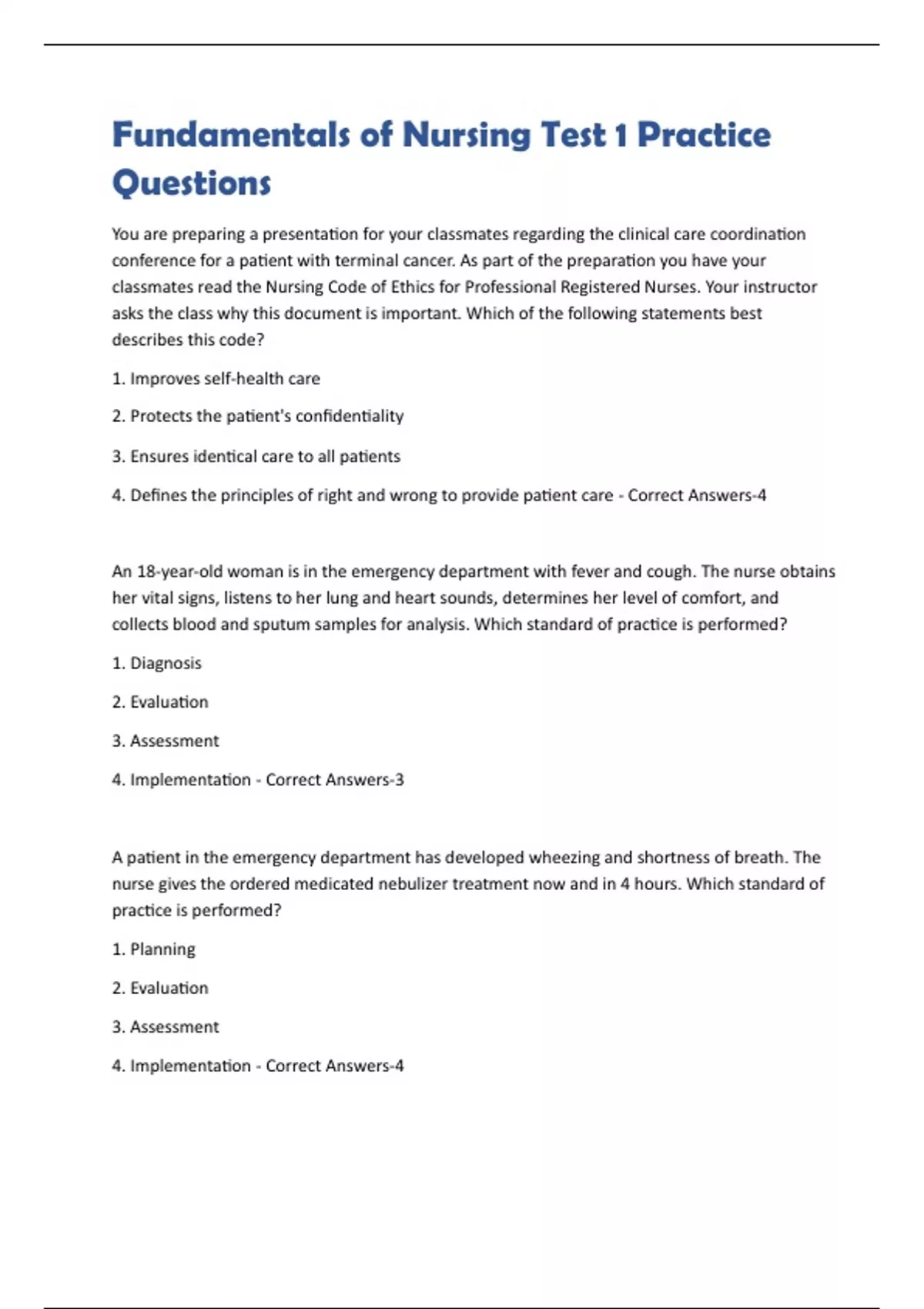 FUNDAMENTALS OF NURSING A+ REVISION QUESTIONS WITH CERTIFIED ANSWERS