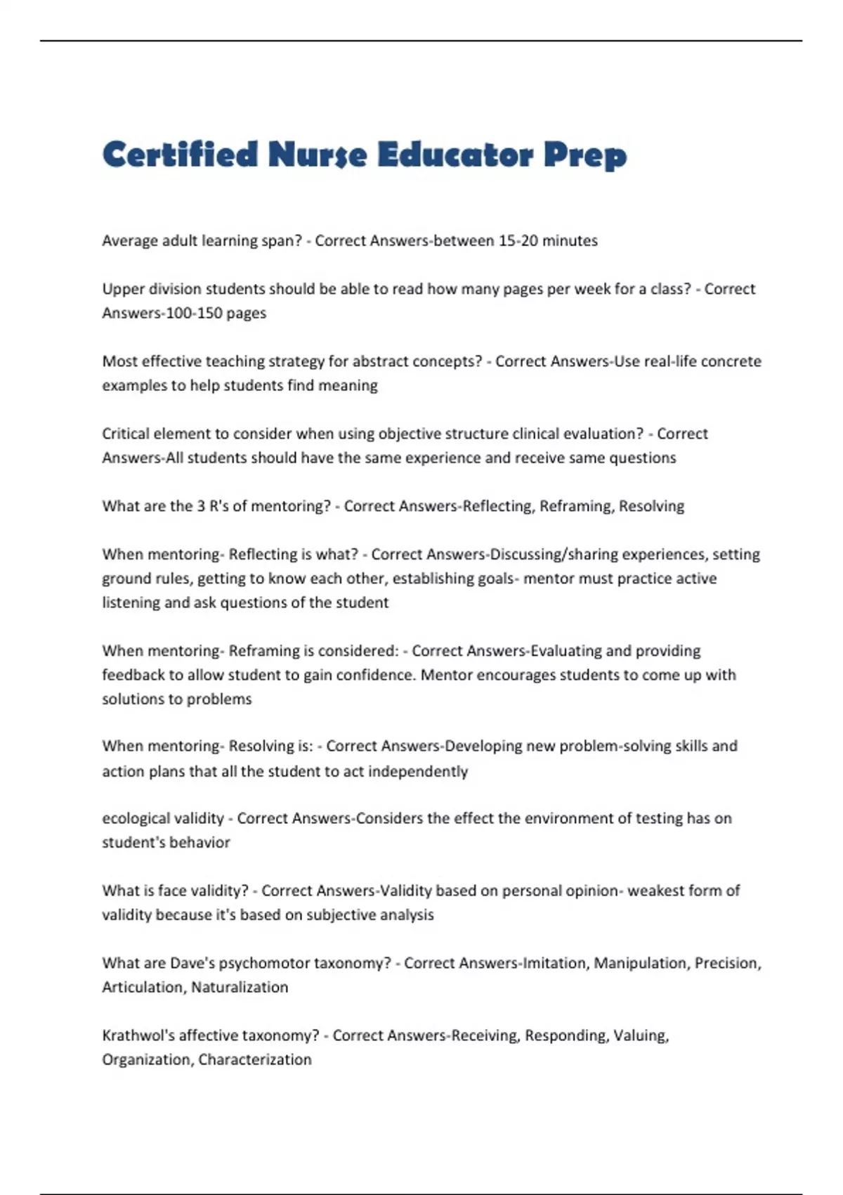 CERTIFIED NURSE EDUCATOR COMPREHENSIVE REVISION QUESTIONS WITH 100% CORRECT ANSWERS