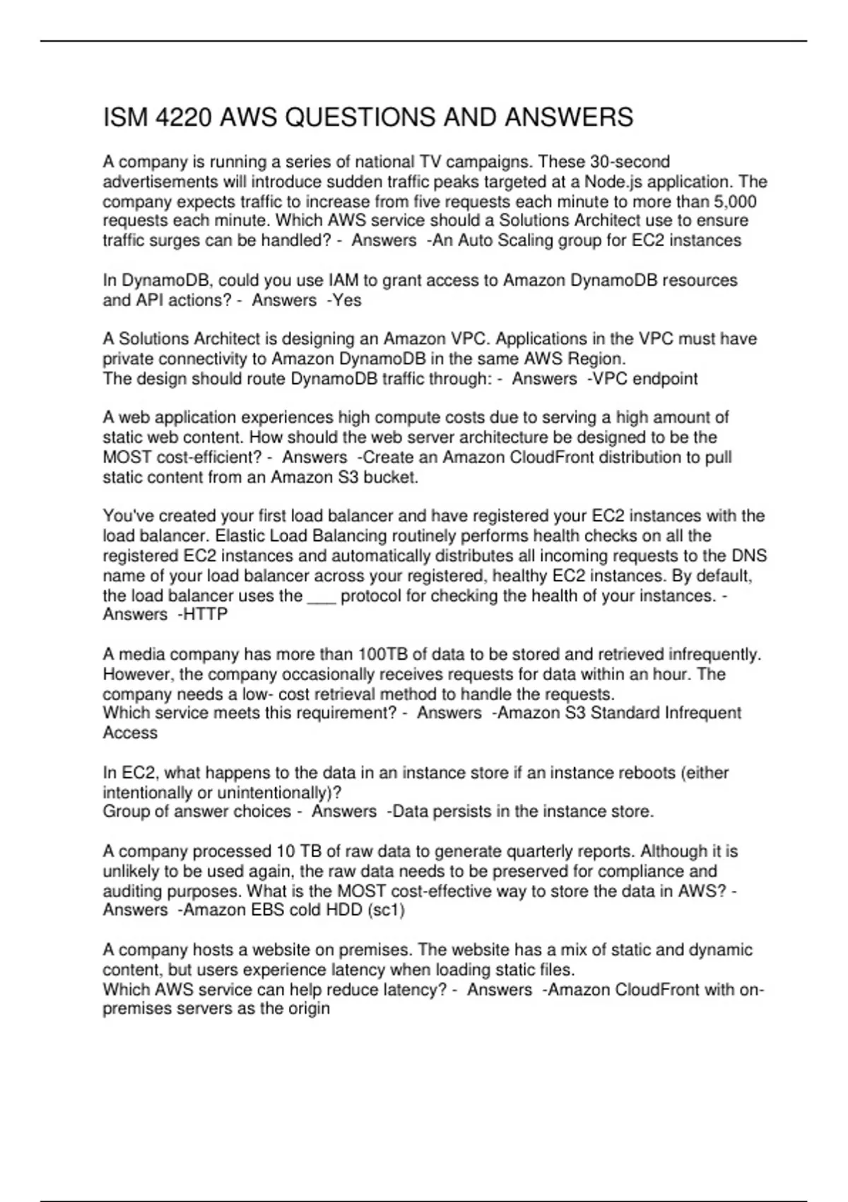 ISM 4220 AWS QUESTIONS AND ANSWERS/ ISM 4220 EXAM 1 QUESTIONS &ANSWERS / ISM 4220 EXAM 2 – FRANKS QUESTIONS / ISM 4220 EXAM 3 CH 8,9,10, & 12 / /ISM 4220 EXAM 3 QUESTIONS & ANSWERS /ISM 4220 EXAM 4 QUIZ QUESTIONS & ANSWERS /ISM 4220 FINAL EXAM FSU FRANKS 2025 /ISM 4220 MIDTERM QUESTIONS AND ANSWERS