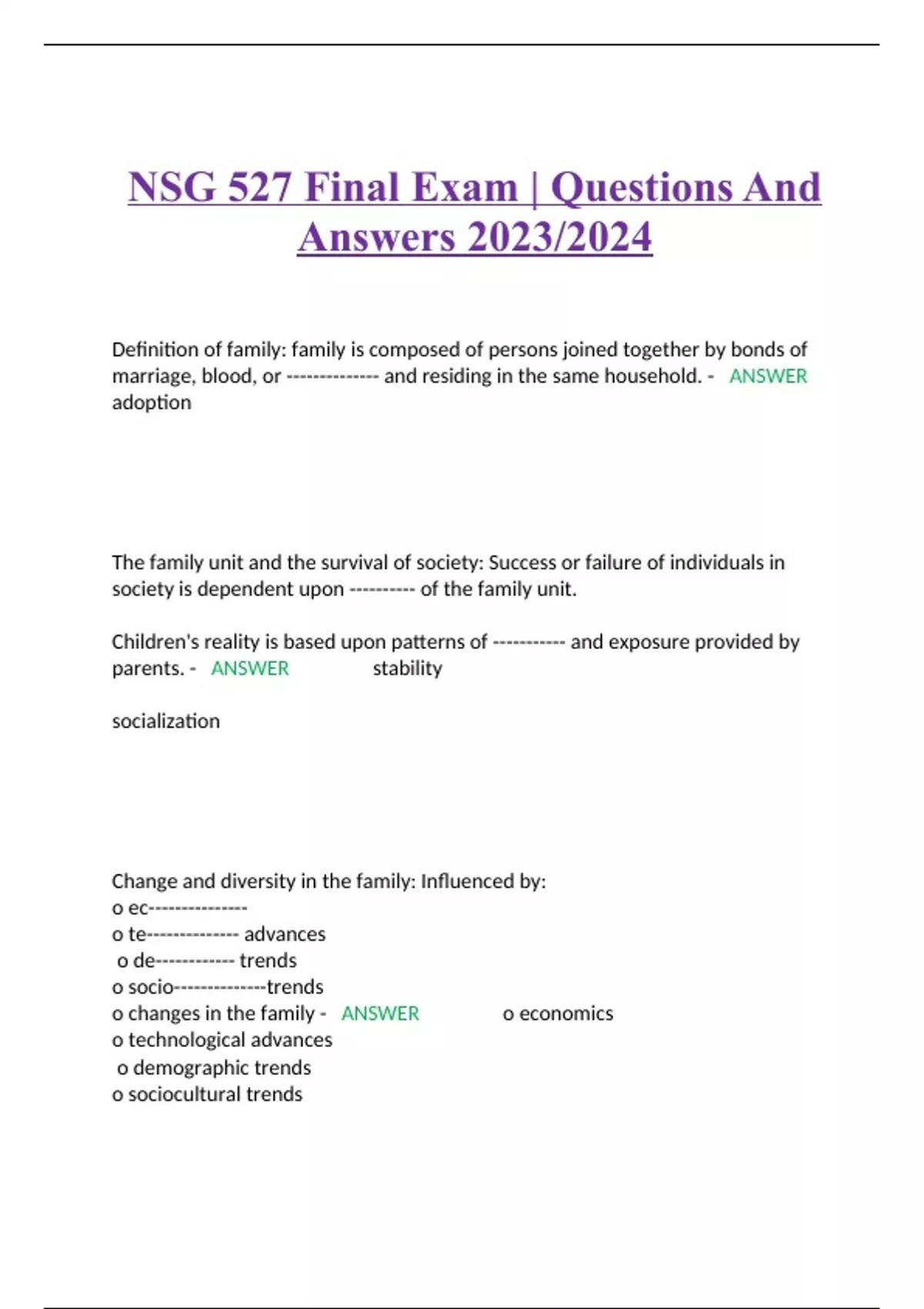 1 Exam (elaborations) Final Exam NSG 527 / NSG527 (Latest 2025 / 2026): Already Graded A Questions and Verified Answers - Wilkes 2 Exam (elaborations) Final Exam NSG 527 / NSG527 (Latest 2025 / 2026): Already Graded A Questions and Verified Answers - Wilkes 3 Exam (elaborations) Final Exam NSG 527 / NSG527 (Latest 2025 / 2026): Already Graded A Que
