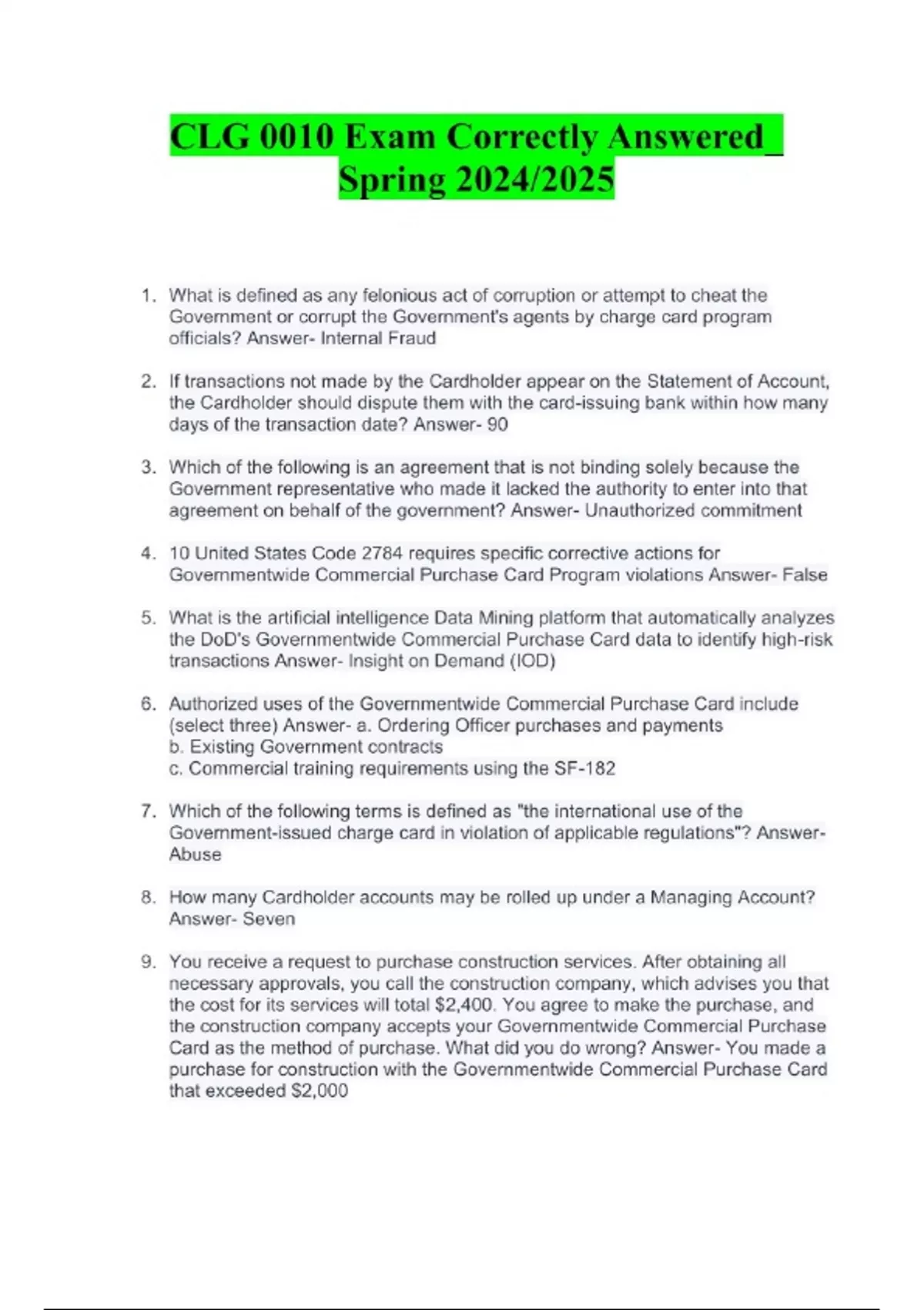 BUNDLE FOR CLG 0010 DOD GOVERNMENT EXAMS 2025/2026 Q&A 100% PASS