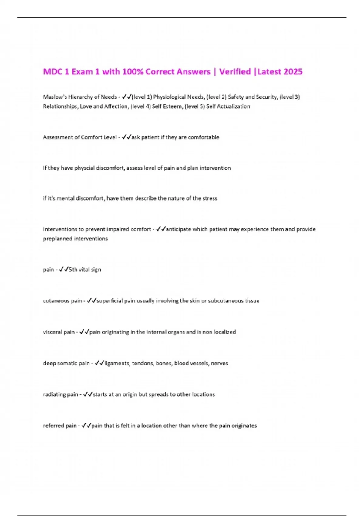 MDC 1 FINAL EXAM with 100% Correct Answers | Verified |Latest 2025