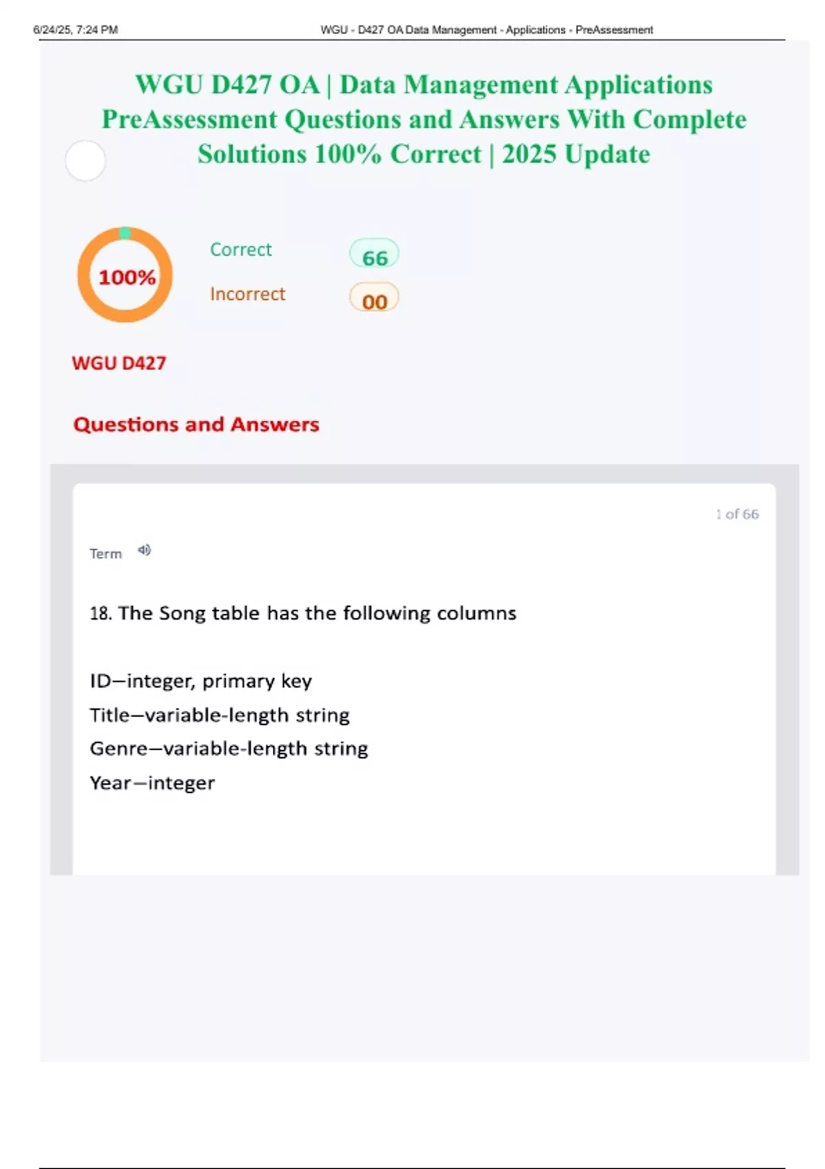WGU D427 OA | Data Management Applications Pre-Assessment BUNDLED Questions and Answers With Complete Solutions 100% Correct | 2025 Update